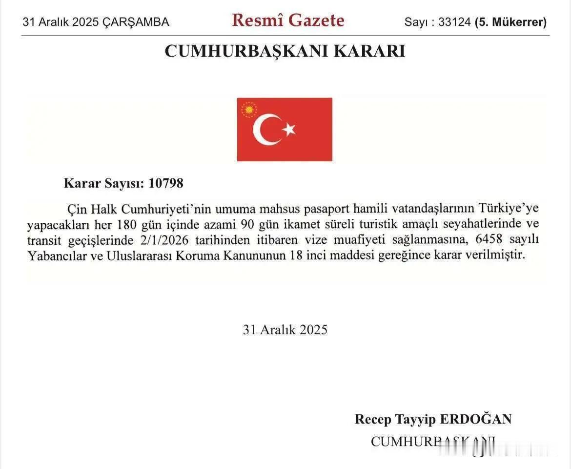 还在为土耳其签证跑腿?好消息砸过来了!普通护照揣兜里就能去! 当地时间12月31日官宣,1月2日起咱持普通护照就能免签入境,180天内累计能待90天,旅游过境都能用。 这波免签绝非偶然,看数据就知道两国走得多近!2024年中土贸易额达428.85亿美元,中国已是土耳其第二大贸易伙伴,2025年还续签了350亿元人民币的本币互换协议。 近年土耳其向中国靠拢的信号很明显:2024年正式申请加入金砖国家,成北约首个这么做的国家;能源上,中企建的胡努特鲁电站、图兹湖天然气储库接连落地,甚至早年还联合研制过弹道导弹。 这不是简单的“站队”,而是互利共赢的选择。土耳其需要中国的市场和技术,中国也需要这个欧亚枢纽的战略支点。免签只是缩影,未来在能源、AI等领域的合作只会更深入。