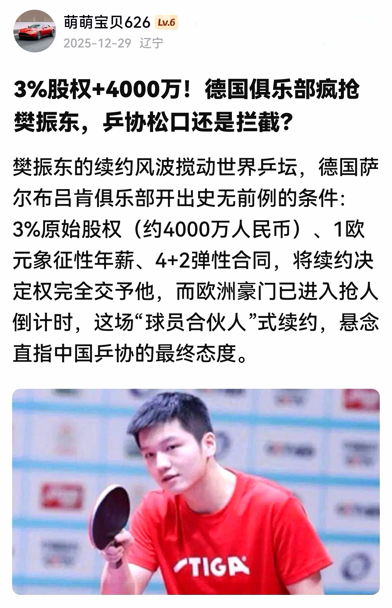 欧洲豪门的抢人倒计时已然开始,而所有目光最终聚焦于:中国乒协将如何定夺。期待真王归位一代宗师樊振东全国人民都想樊振东回来打球