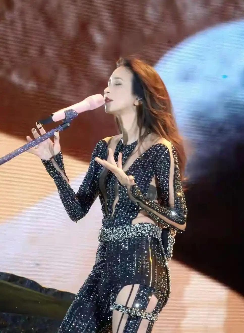 54岁莫文蔚穿闪钻战衣开唱,身材管理超绝,出道 30 年仍是顶流