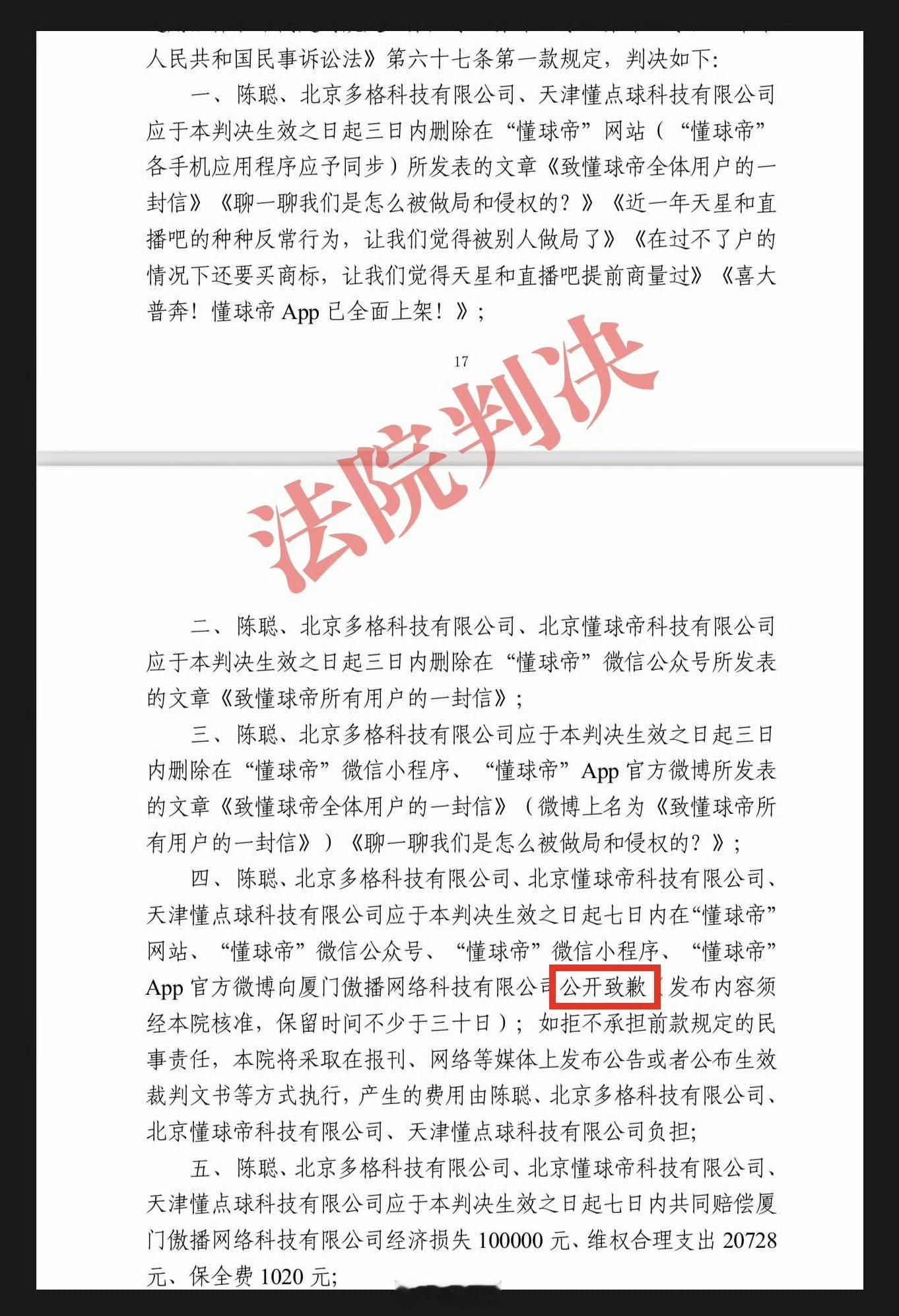 懂球帝侵犯直播吧名誉权被判赔偿 直播吧创始人发文确认,起诉懂球帝及其法人陈聪侵犯名誉权一案,法院已判决对方赔偿并需在自家平台道歉。回溯去年10月,懂球帝创始人曾发公开信,称遭直播吧“恶性商业竞争和做局”,指其拍下“懂球帝”等相关商标。而直播吧方面当时就回应,这些商标是因原持有人欠款,被法院强制执行拍卖所得,绝非“做局”,并明确会追究诽谤责任。如今判决落地,也算是给这场纠纷画上了句号。体育大赏我的年度赛场记忆