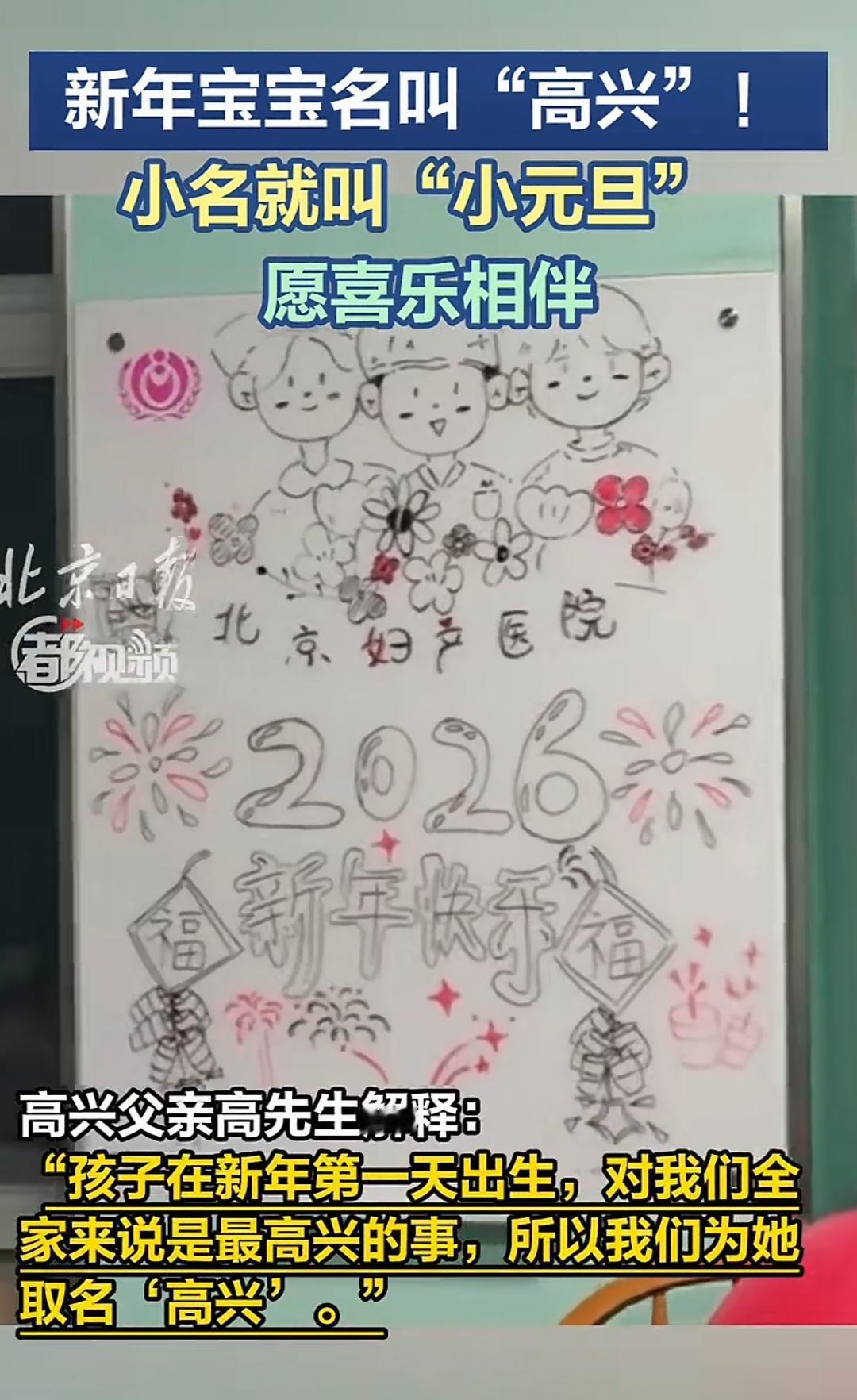 新年宝宝叫“高兴”小名“小元旦”愿喜乐相伴,是个女孩! 声音真响亮!”2026年1月1日1时43 分,北京妇产医院产房里传出响亮 的啼哭声,该院首位“新年宝宝”顺 利出生。 新年宝宝叫“高兴”,小名“小元旦”,这不仅仅是一个名字,更像是一份特殊的祝福,一份对未来满满的期待。想象一下,一个刚刚来到这个世界的小生命,带着新年的喜悦和希望,成为2026年的第一缕曙光。她的到来,仿佛为整个家庭、甚至整个城市注入了一股暖流,也让人不禁思考:这个新年的意义究竟是什么?是辞旧迎新,是梦想的起点,还是一种对未来无限可能的憧憬? 北京妇产医院的产房里,响亮的啼哭声划破了清晨的宁静。那一刻,时间仿佛都为她停留,只为迎接这份属于新年的特别礼物。她的到来,不仅代表了生命的奇迹,更象征着希望与新生。有人说,每个新生儿都是上天赐予的奇迹,是对未来最温柔的承诺。而“高兴”这个名字,正如她的笑声一样,充满了阳光和希望。 在这个充满仪式感的时刻,我们不禁反思:为何我们如此渴望用一个特殊的名字,来纪念某个特殊的日子?或许,是因为我们都在寻找一种象征——一种让我们在日复一日的平凡中,依然相信奇迹存在的信念。新年的第一天,迎来第一位宝宝,他用最响亮的啼哭告诉我们:无论过去怎样,新的一年都值得期待;无论经历多少风雨,生命的力量永远在我们心中燃烧。 而这位“高兴”女孩的到来,也让我们看到:生活的美好,往往藏在那些细微而温暖的瞬间。她的出生,像一面镜子,映照出我们对未来的希望与梦想。每个人都在用自己的方式,迎接新年的到来,或许是辞旧迎新,或许是许下心愿,但最重要的,还是那份对生活的热爱和对未来的期待。 或许,很多人会觉得,一个名字不过是符号,但它背后,却藏着无数家庭的梦想和希望。名字可以简单,也可以深刻,但最重要的是,它承载了我们对未来的美好祝愿。就像“高兴”这个名字,它让人忍不住想:未来的日子,她会带给这个世界怎样的快乐?又会成为怎样一个温暖的人? 每年的第一天,都有无数新生命诞生,他们带着不同的故事、不同的梦想,开始属于自己的旅程。而我们,作为旁观者,也许可以从这些生命中汲取力量:无论世界多复杂,生活多艰难,只要心中有希望,就有无限可能。让我们以“高兴”这个名字为启示,带着喜悦和期待,迎接每一个崭新的日子。因为,生活本就是一场盛大的庆典,而我们,都是这场盛典中最闪亮的星辰。宝宝命名