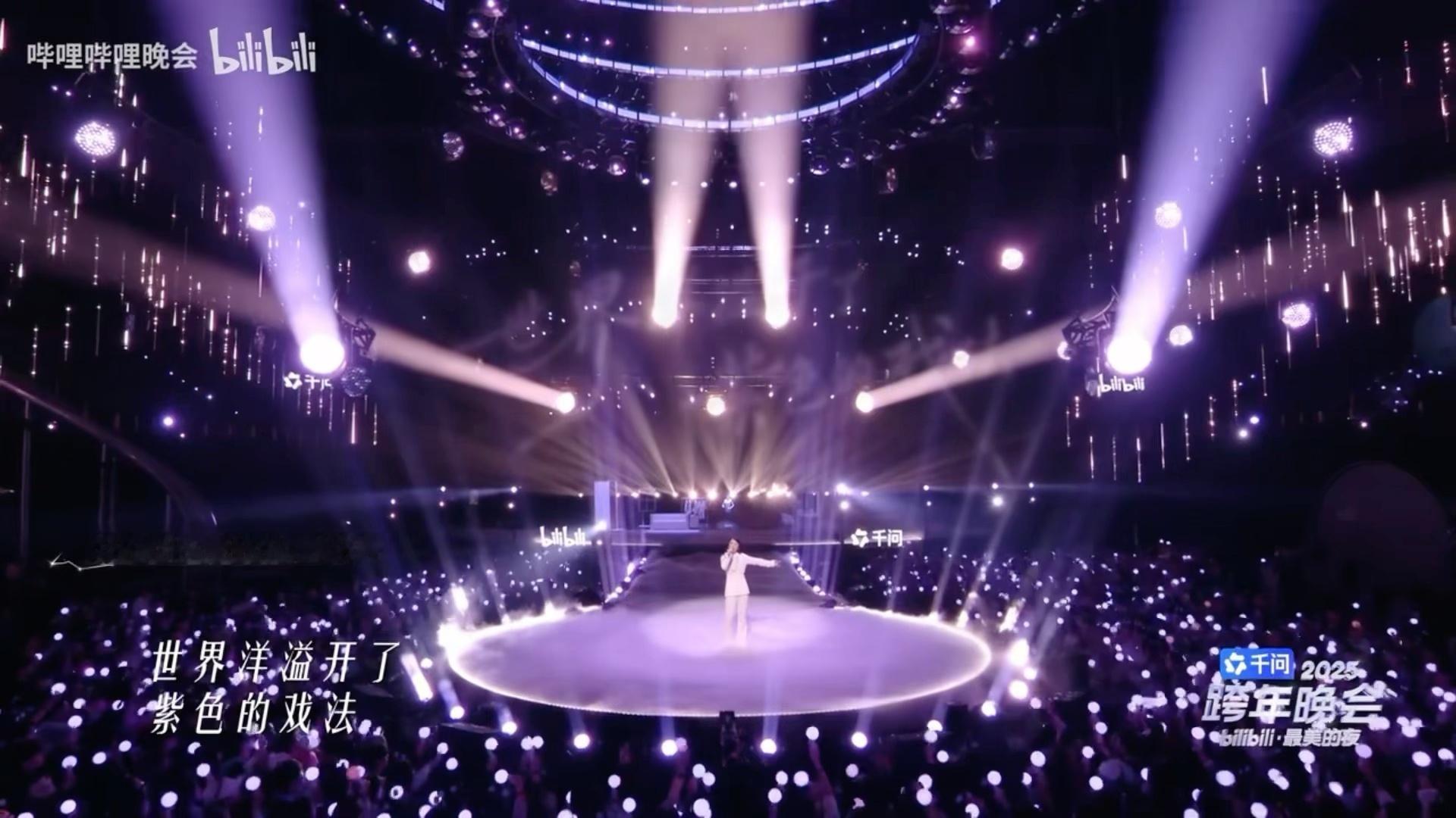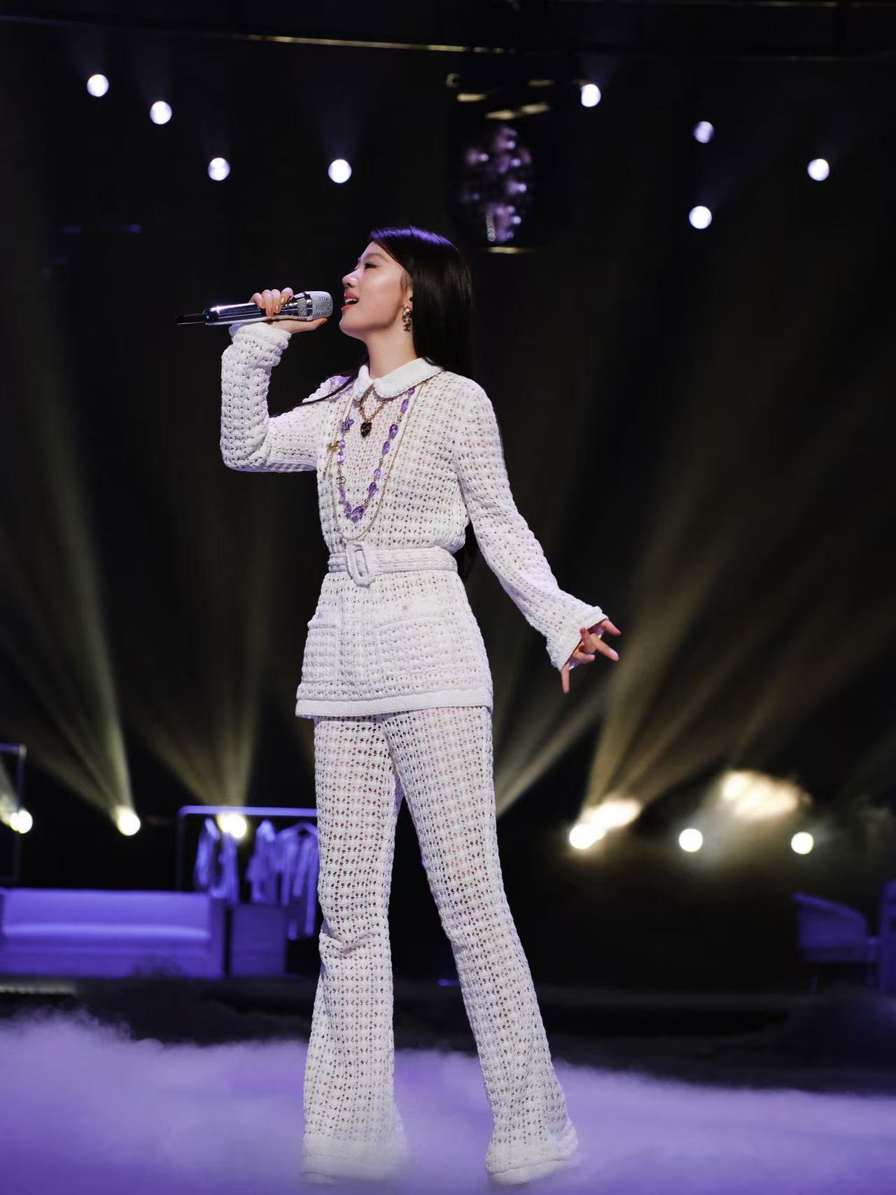 单依纯紫色舞台接好运单依纯昨天舞台造型好有新意!按下香水瓶般的紫色按键,黑白瞬间切换成梦幻紫境。歌词改编藏香气巧思,紫色彩带飘落“Take Your Chance”,正如香奈儿所言,幸运是努力后的必然,花果香与舞台共赴新年好运2026年也要听单依纯唱歌~