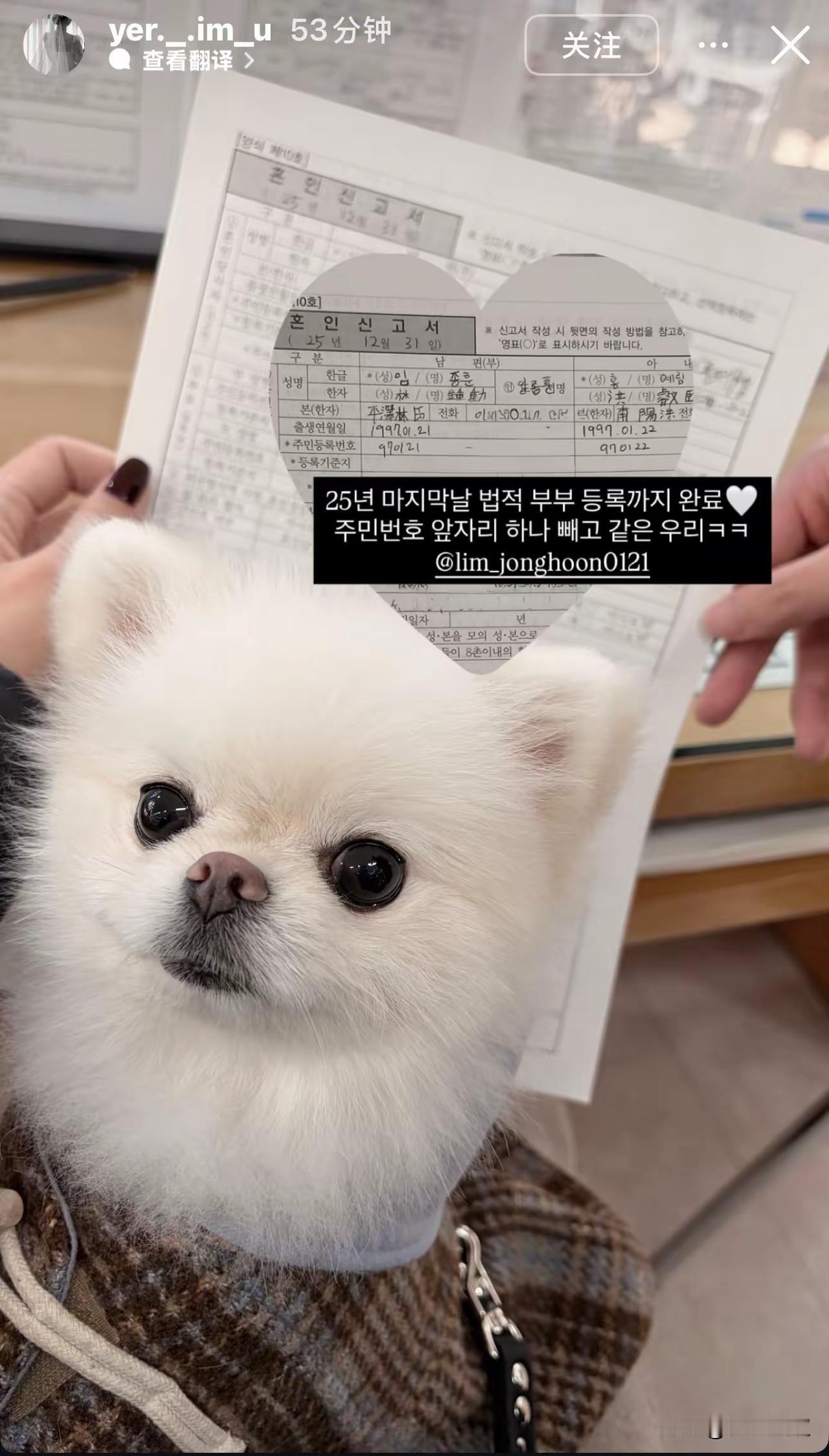 原来林钟勋是先上车,后买票呀! 两人11月底结婚, 12月31日才领的结婚证, 难道他不怕媳妇拿着彩礼跑了吗? 肯定不怕! 因为在韩国结婚, 是女方给男方彩礼! 通常男方买房, 女方提供房价10%左右的彩礼, 用来添置家具! 相对来说, 韩国男人压力比我们小很多!