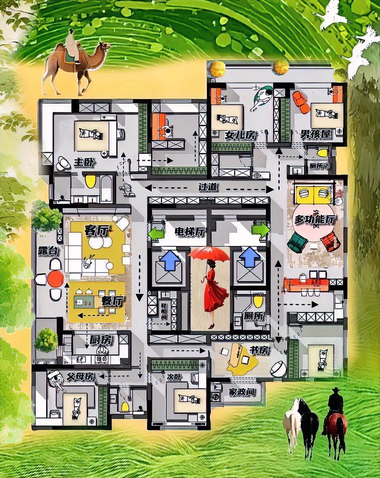 收纳是一道光,照亮整座城,370㎡终修成正果。 世界小了,布局心大了,有了大格局,大平层才能容万物,也就是说六居室,容得下三代同堂,甚至于四代同堂! 你看,是不是很少见大平层,改六间房,一般四个卧室足够用! 其实也简单,用一条24米洄游,串联十二个空间,形成上下私区,左右公区,一个别有风番的布局! 相当于,动线有分寸,布局有节制,你看四条主线,基本以卧室为主,收纳为辅,打造的全新居家环境! 如果说,它自带温润气场,横厅没有,但休闲区还是有三分,与开放式书房,打造美术馆走廓,美得不张扬! 布局上雅得不刻意,25组收纳柜,也是能匹配大平层的气质,接地气的平凡布局,最动人。