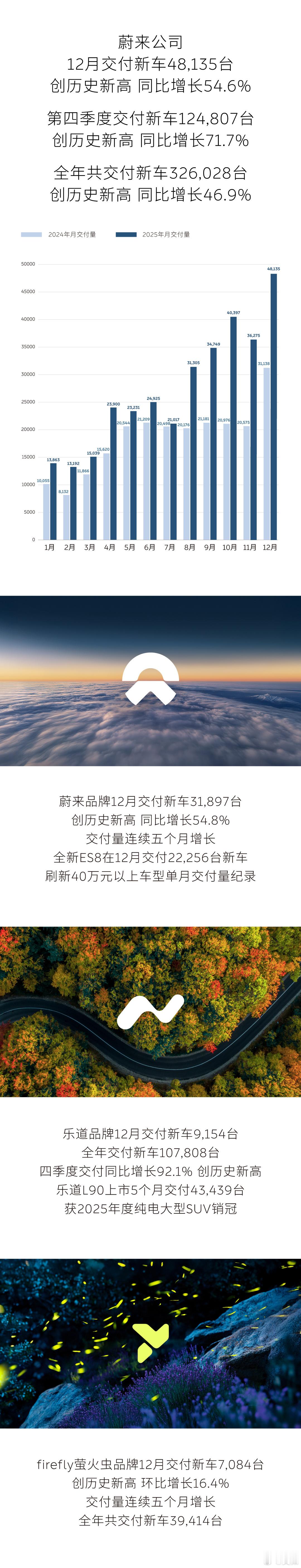 2026年第一天,新势力陆续公布去年的月度/年度销量:鸿蒙智行:12月89611台,全年589107台零跑:12月60423台,全年596555台小鹏:12月37508台,全年429445台小米:12月超50000台,全年超411000台理想:12月44246台,全年407343台深蓝:12月30999台,全年333117台蔚来全品牌:12月48135台,全年326028台极氪:12月30267台,全年超224000台岚图:12月16169台,全年150169台智己:12月13577台,全年81017台我们年底来看看,有没有谁能冲到100万的?会是谁?小米汽车12月交付量超5万台鸿蒙智行2025全年交付589107台理想汽车12月交付新车44246辆