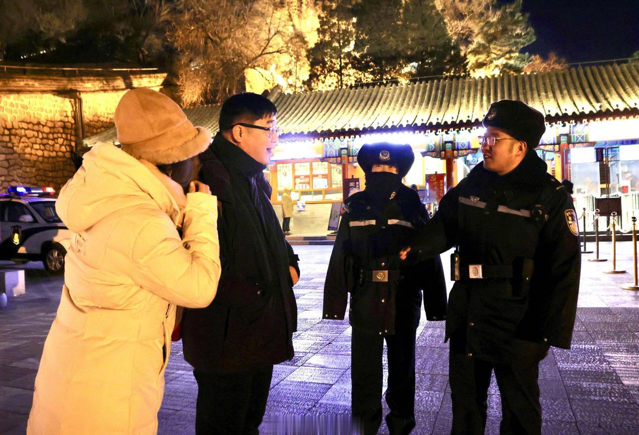 市集、音乐会、零点倒计时热闹不停,而人群中那抹藏蓝身影更是安心感拉满~@平安北京石景山 @平安北京延庆 民警们顶着寒风坚守岗位,耐心解答“市集在哪”“充电宝去哪借”的疑问,细致指引跨年活动路线,反复提醒大家注意脚下安全,用一次次贴心回应温暖了冬夜的冷意。