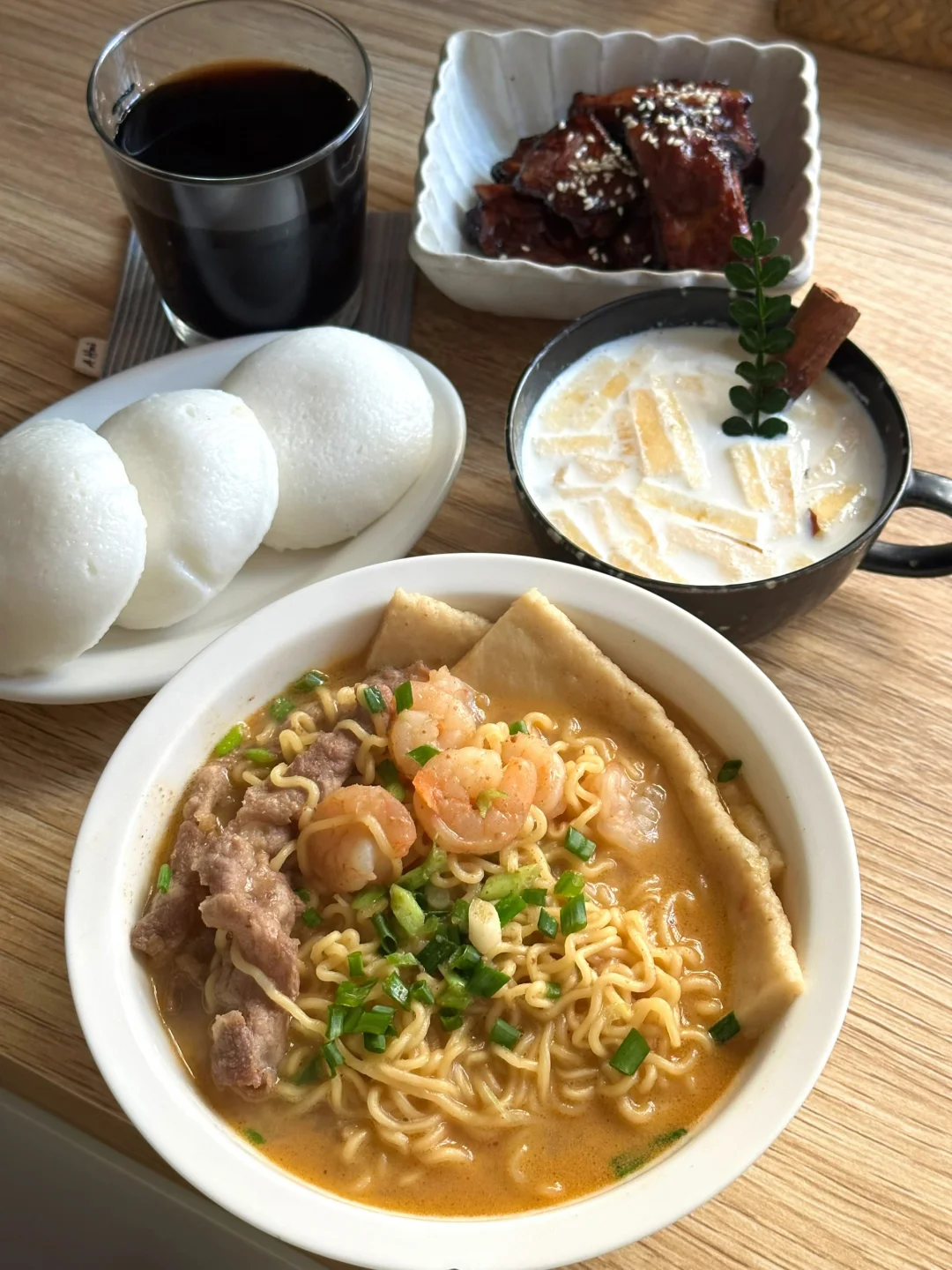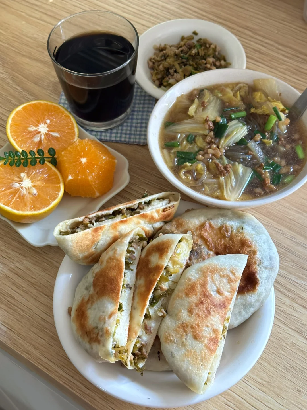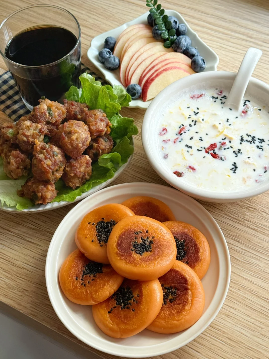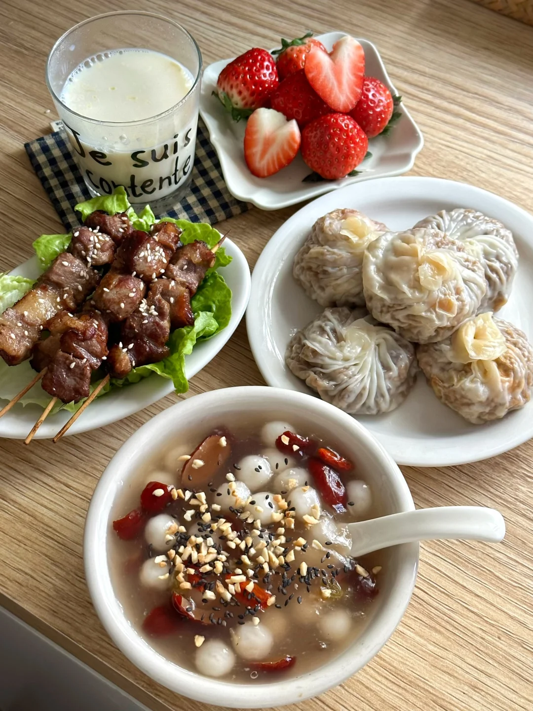 1️⃣红豆沙糯米饼,咸荷包蛋汤,黑玉米,金桔 2️⃣包菜豆干鲜肉扁食,小米粥,烤肠,蜜桔 3️⃣虾仁肥牛沙茶面,米糕,苹果炖牛奶,烤排骨4️⃣红枣藕粉圆子,蛋黄烧卖,烤肉串,草莓 5️⃣鸡蛋肉末肠粉,水煮菜心,木薯糖水,山竹 6️⃣红薯饼,炸藕丁肉丸,牛奶调蛋,苹果 7️⃣雪菜鲜肉饼,白菜粉丝汤,甜橙 𝟚𝟘𝟚𝟝的每一缕晨光,都被妥帖地收进餐盘里☀️ 从盛夏冰饮到冬日暖粥,有不重样的仪式感 ✨ 每天早上做的不仅是热乎乎的食物,还有被慢慢治愈的心情。 📝 2026早餐心愿单: ▫️解锁更多地方传统早餐 ▫️尝试在家手做面包、可颂 2026,继续做自己的早餐创作人🥂