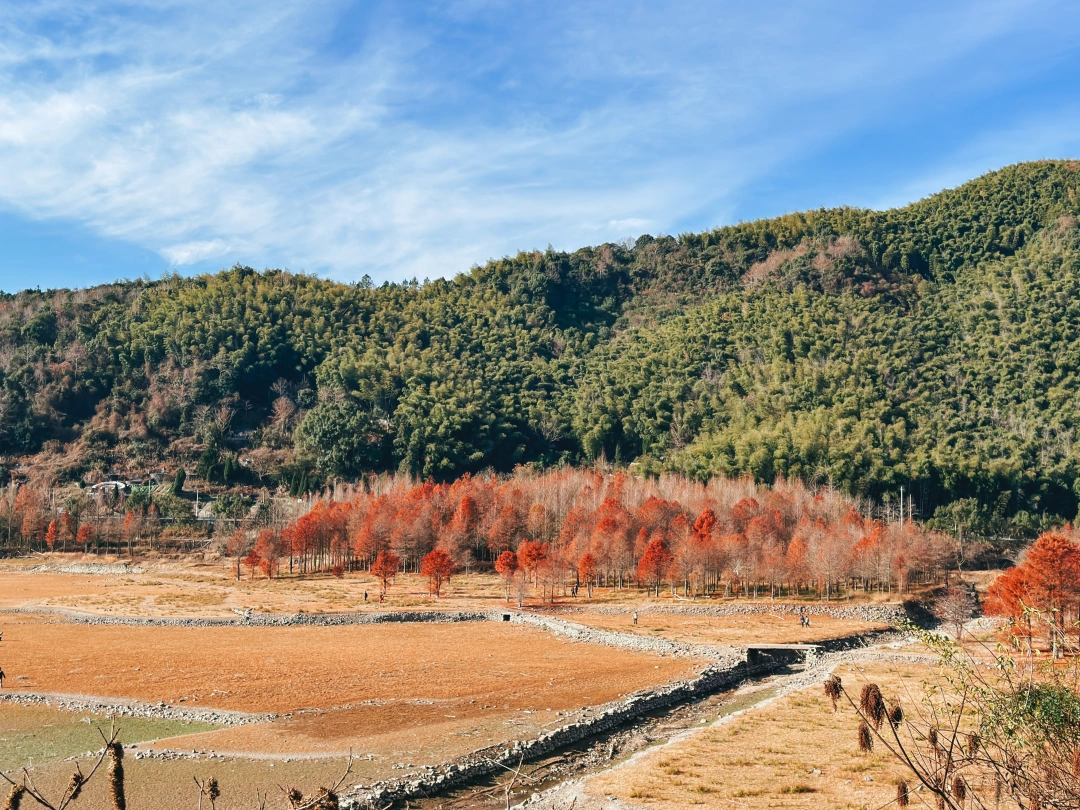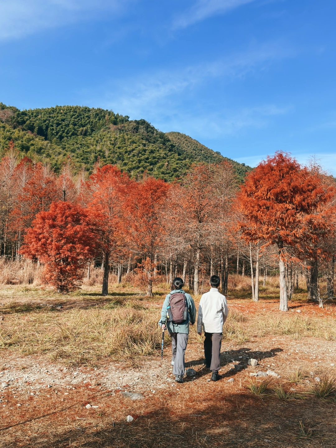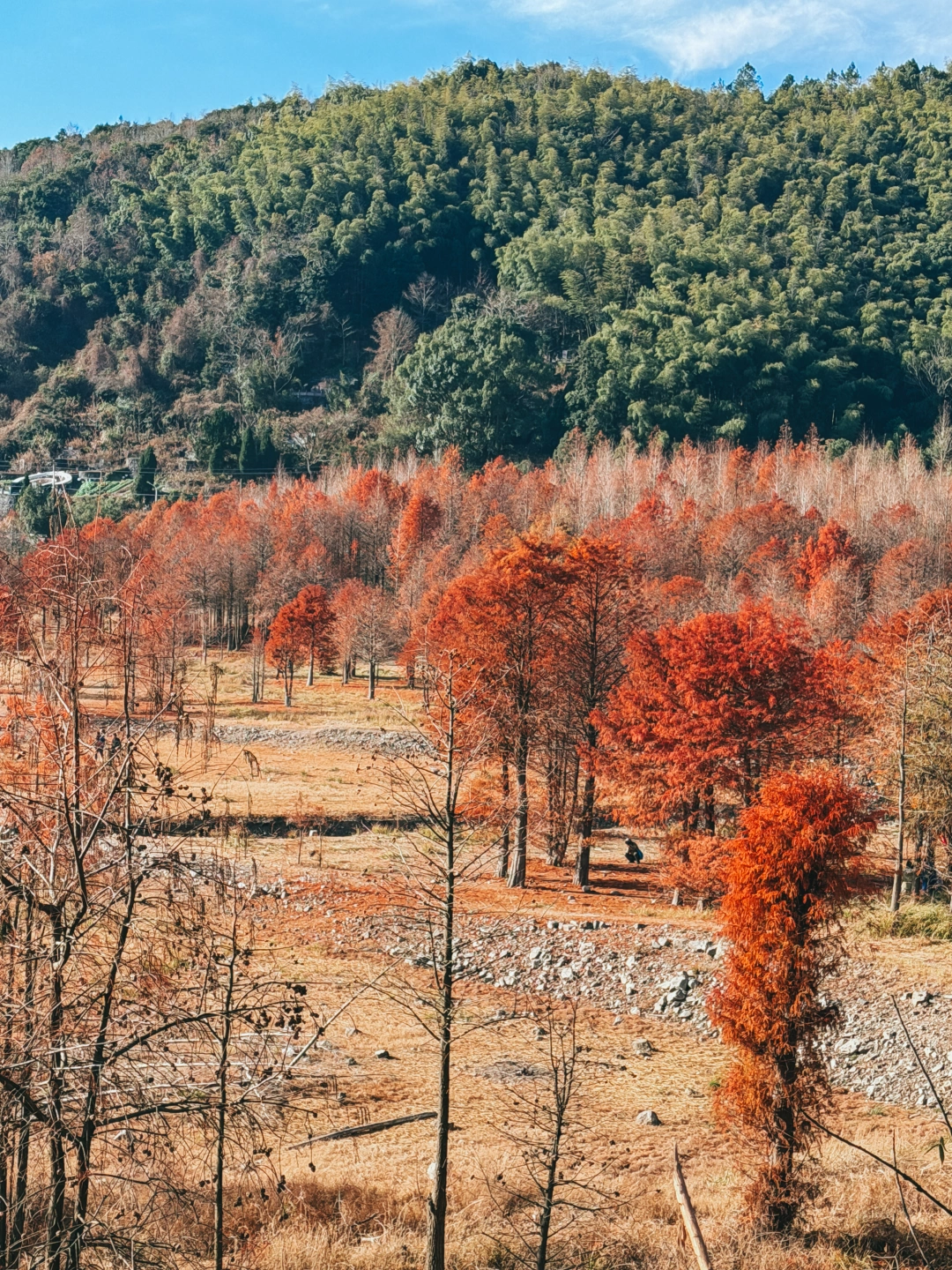 其实这个时间段的水杉林色彩没有之前的浓郁了,但是远远看去却如水墨画一般,晕染的恰到好处