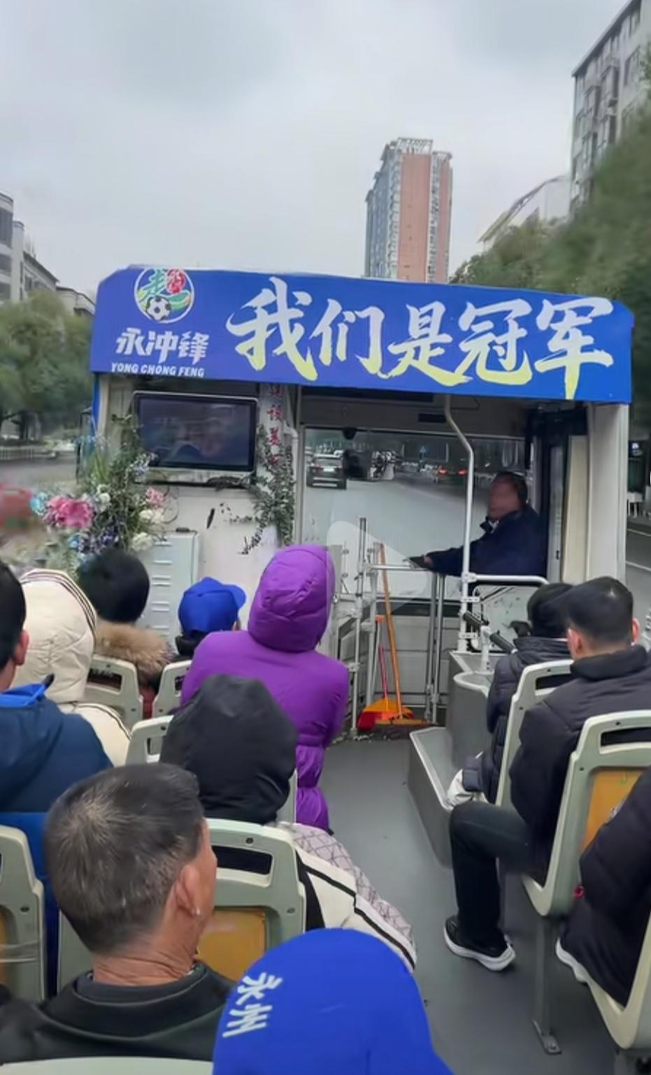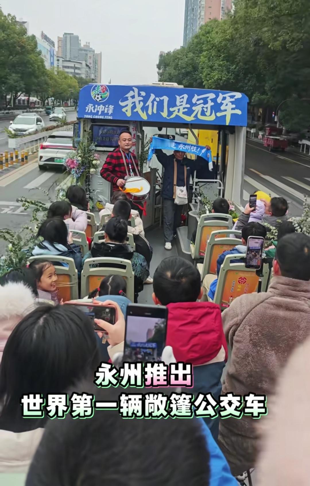 永州队夺冠之后,永州人去公交车打卡! 这是冬天也挡不住球迷的热情,真是世间罕见呀。 明年其他队想这样,必须先拿个冠军。 人家现在是湘超冠军城-永州。[偷笑]