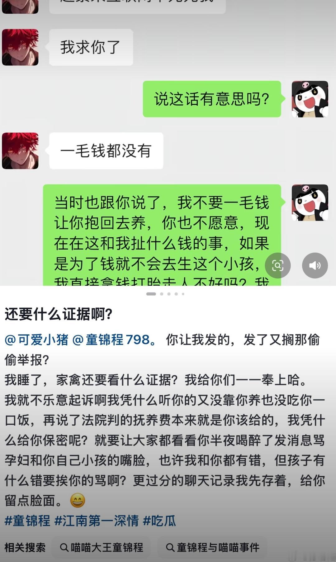 曝童锦程隐婚生子 抚养费拉锯战太抓马 大瓜突袭!童锦程被前女友发文爆料隐婚生子,还控诉他拒不支付抚养费,直接炸懵全网! 扒出聊天记录才知真相:童锦程愿意每月付5000抚养费,女方却要求一次性结清18年费用,双方谈不拢闹掰! 全程看下来,童锦程态度还算拎得清,愿意承担责任没跑路,反倒女方诉求有点离谱。 这波抚养费拉锯战太抓马,孩子是真,纠纷也是真,瓜田在线蹲后续了!