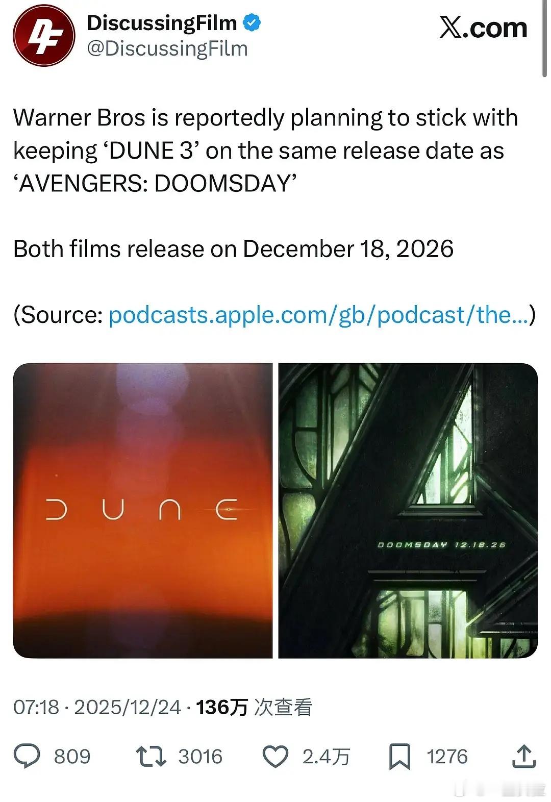 沙丘3和复联5同一天首映,你打算看哪一部?