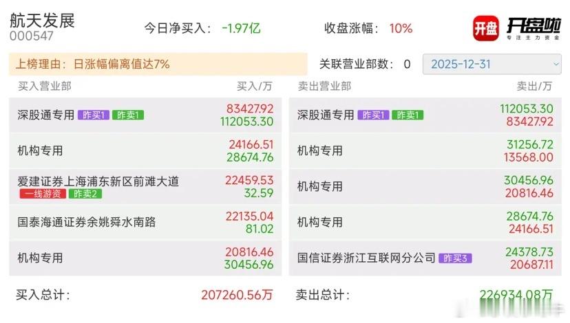 商业航天太强了,航天发展继续飞!上午短暂调整后,走出了单边上涨趋势,直到尾盘封板涨停。龙虎榜也相当炸裂!大佬一个都没走,要么做 T,要么单边买入。看样子商业航天还能继续玩!龙头不倒,继续热闹!