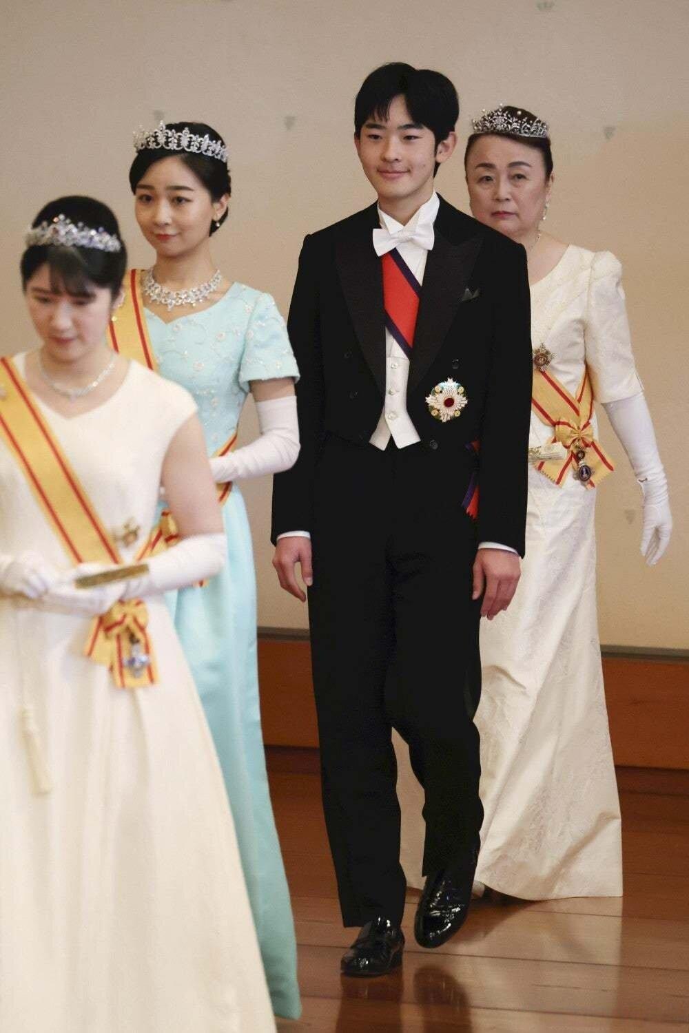 他来了,秋筱宫悠仁亲王迈着迷茫的步伐来了,眼神一如既往的清澈而又愚蠢。 亲女儿日子过得憋屈,侄子享受着家族的荣光,没有实权的德仁国王无法为爱子的未来铺路。 图:日本王室成员出席新年接待会,秋筱宫文仁亲王是王位第二顺位继承人。