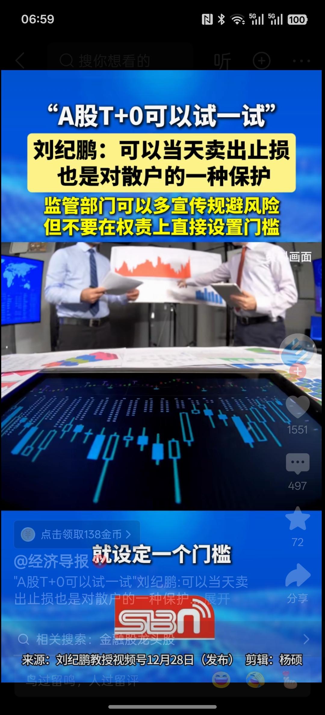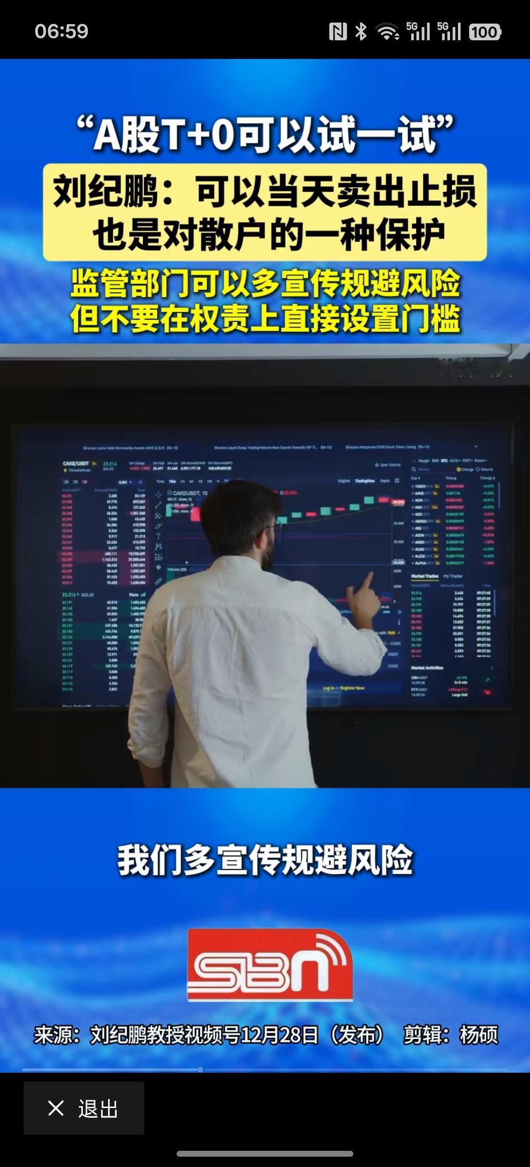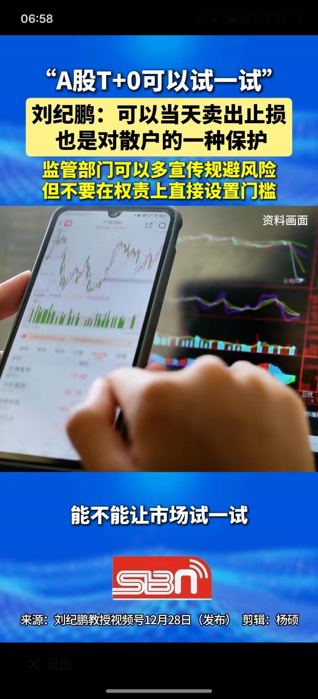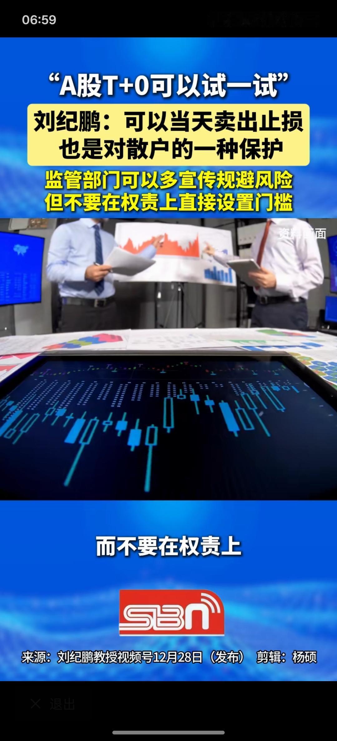 t+0这个问题一直在讨论,根据刘教授的讨论。确实可以试一下t+0,因为t+1其实为了机构,尤其是这些游资有资金优势的更好赚钱!已经变成他们一种非常有利的交易模式!直线提交您,他们这种交易模式完全会被打乱,就没办法进行割韭菜,搞什么涨停板,基本上就没有了,散户可以随时随卖,根本就没必要等到第二天也就没办法割