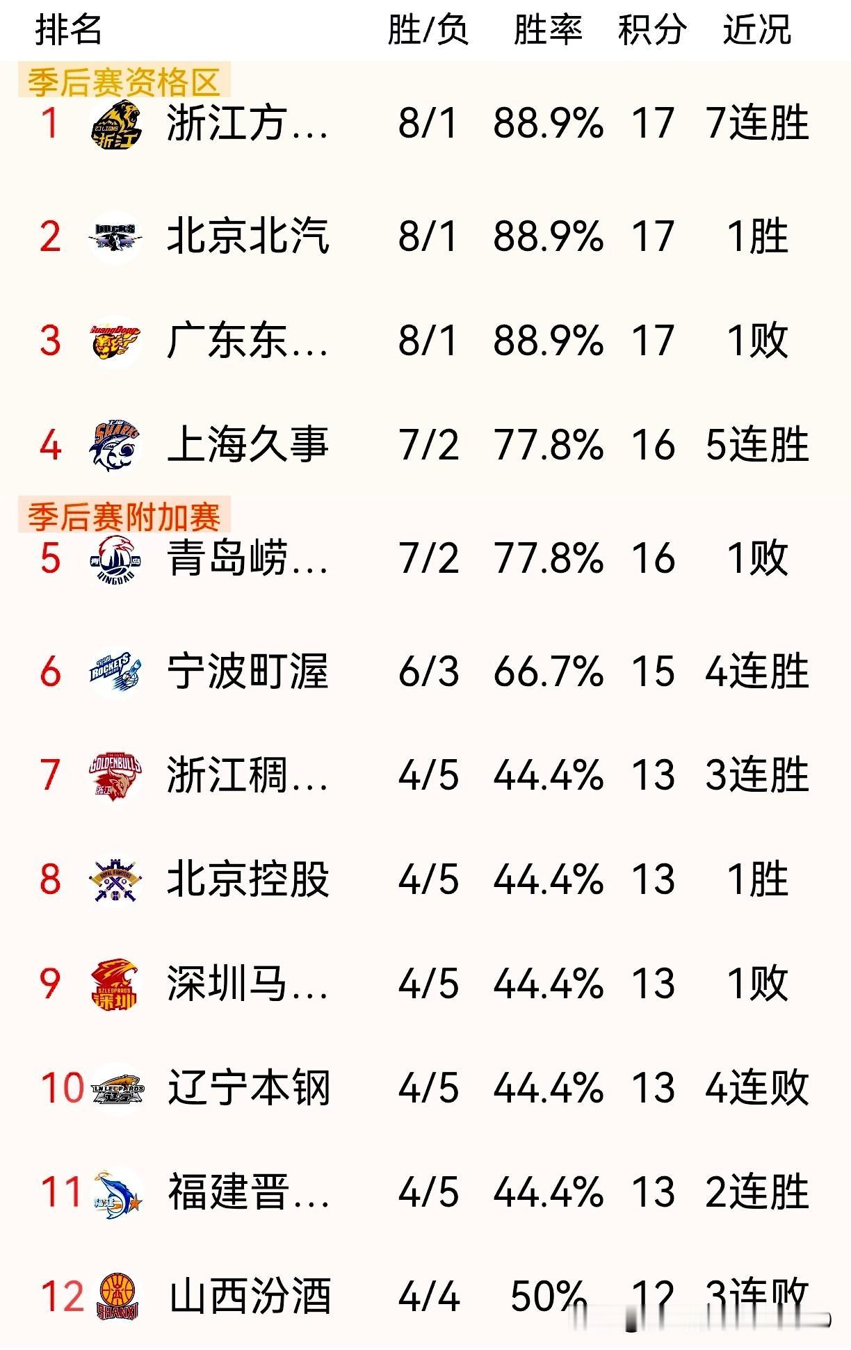 [玫瑰][玫瑰][玫瑰]CBA常规赛新年大战(第九轮),浙江三支球队全部获胜,喜迎开年红。 一,宁波町渥客场84-79战胜江苏肯帝亚,以6胜3负的战绩积15分,斩获四连胜,暂列积分榜第六位。 二,浙江广厦客场以102- 68大胜天津先行者,豪取七连胜,目前战绩为8胜1负,积17分,暂列积分榜第一(本场比赛巴厘.布朗轮休)。 三, 浙江稠州金租78-73加时战胜青岛崂山啤酒。浙江稠州以4胜5负的成绩取得三连胜,积13分,暂排积分榜第七。 浙江这三支球队中,宁波町渥在新赛季进步显著,着实令人刮目相看;浙江稠州金租经过调整,正朝着好的方向发展;浙江广厦作为卫冕冠军,实力进一步补强,整体稳中求进,愈发成熟,是夺冠的最大热门之一。 那么,新赛季浙江三支球队能否全部打进CBA季后赛,创造浙江篮球的历史呢?着实值得期待。[点亮平安灯][点亮平安灯][点亮平安灯] CBA新赛季常规赛