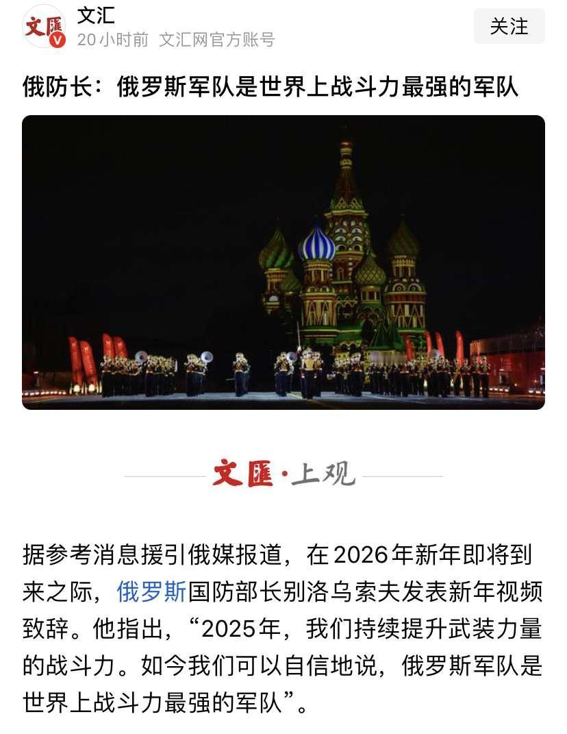 新年的第一个笑话出现了! 俄罗斯称全球最强,乌东僵持四年未破,核威慑真能撑住? 2026年刚开年的时候,俄罗斯官方就放出话来,说他们自己的军队是“全球最强”,这话一出来,网上可就炸开了锅,很多人都在问,乌东那边已经打了四年仗,怎么还卡在原地没有动,前线根本推不进去,伤亡数字也没见减少,这“最强”两个字听着就有点虚。 听说克里姆林宫那边正在改变想法,他们不再指望靠打仗来取胜,转而打算把特朗普推出来,让他给泽连斯基施加压力,通过政治上的交换来获取土地,毕竟战争如果再继续下去,光是乌东地区这一片,可能就得再付出几十万人的生命,这种代价谁都承受不住。 唯一能够拿得出手的东西,就是核武器,但核弹不是用来做摆设的,维护它需要的费用特别高,俄罗斯的经济状况本来就不好,这样花费大量资金,普通人的生活就会变得更困难,国际上其他国家也担心,万一哪一天不小心出了差错,这个后果没有人能够承担得起。 俄乌冲突 普京 特朗普 核威慑