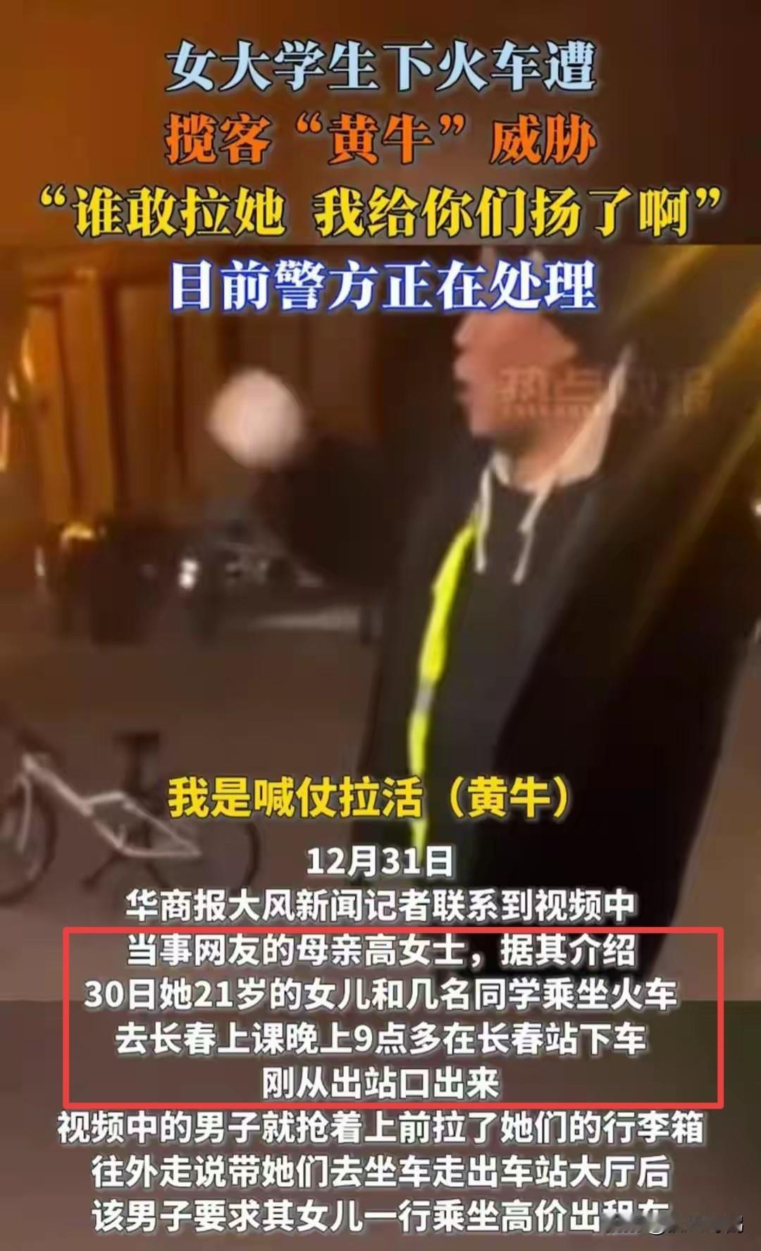 越扒越有!张威老底被扒光,难怪这么嚣张,背后的女老板也不简单↓ 12月30日晚上10点钟,大学生高某跟同学坐火车到长春上课,刚下火车就被一位中年大叔拉走行李箱,对方称带她们去打车,还说很优惠之类的。 结果刚到广场上就宰客,差不多7公里的路程要80元,讨价还价后一口价70元,高某当场回怼大叔: 70~怎么不去抢 于是双方发生了争执,男子告诉高某这个车你愿意坐就坐,不愿意坐就不坐,但“你们必须给我买包烟!”要知道我这一路给你提行李箱不是白提的。 高某当时真的被眼前的大叔厚脸皮惊到了,当初是他一上来就抢走行李箱,又没有让他帮忙,现在却想要好处。 不给好处(买烟)还不让走,于是,高某拿起手机对着大叔录视频留证据,视频中显示的很清楚,男子的态度极其恶劣,两次被拒后,当众威胁: “长春的出租车们,谁敢拉她们,我给你扬了” 并自曝家门: 拉活的,我叫张威! 后续还是高某打电话报警,才得以脱身,重新打了一辆正规的运营车,打表到达目的站只需要30元。 直到知情人曝很多内幕,才明白这个叫张威的男子为什么这么嚣张了。 张某,今年47岁,没有家人,一个人在长春游手好闲几年,住在一家招待所里,有人问无业,钱从哪里来呢? 张某的邻居爆料称: 张某背后的人就是美某招待所的女老板,长春站前黄牛的组织者。事发第二天晚上,张某回到住所时被邻居蹲守了,这个邻居被张某欺凌过,所以看到张某揽客威胁女学生视频上了热搜后,特意在家口蹲守他。 拍下了张某和他背后的女老板照片,女老板估计怕被牵连,在家都戴着口罩。 而且这个女老板可不简单,这个邻居透露称: “这家店铺养一些到岁数的人接站,他家老多老头接站了,都不符合要 求。”所以,张某无家无业照样过着很滋润,也难怪邻居说他赚“丧良心钱”! 宰客,恶意要价,威胁人身安全等~ 而且被张某欺凌过人都拿他没办法,因为张某没有家就一个人,和他打不起,还是个酒鬼,喝完酒就闹事。 该邻居称: “我家门前停车还得听他的,不听他的就使坏,他家老板也不管,都是背后指使的!” 看到最后,难怪张某这么嚣张,这样的一个人,试问谁能惹得起? 虽然,目前张某已被拘留,但等他出来又是一条好汉,希望官方多查查他背后的人,正好可以一网打尽。
