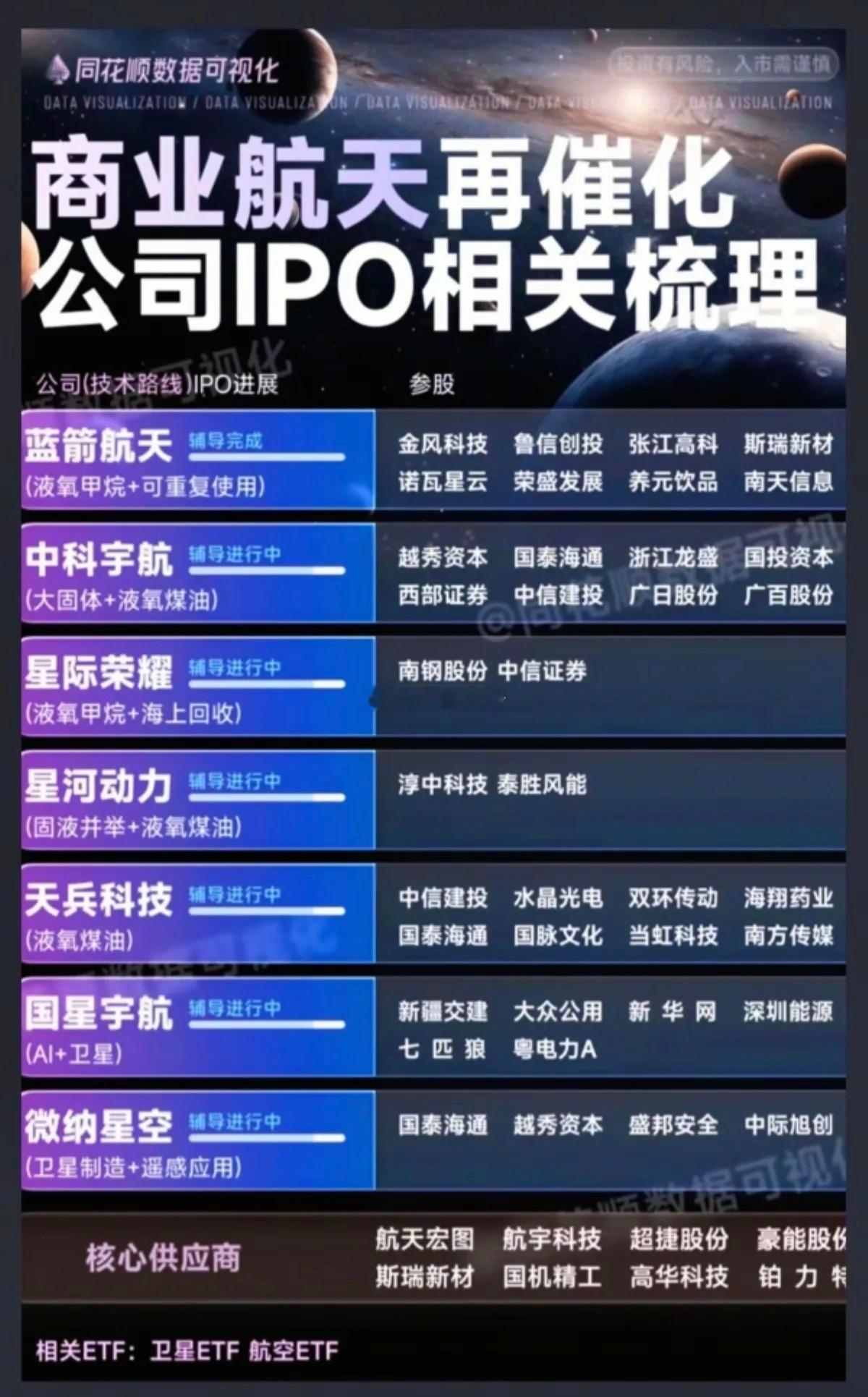 政策催化:六大航天巨头IPO进展!1.蓝箭航天2.中科宇航3.星际荣耀4.星河动力5.国星宇航6.微纳星空