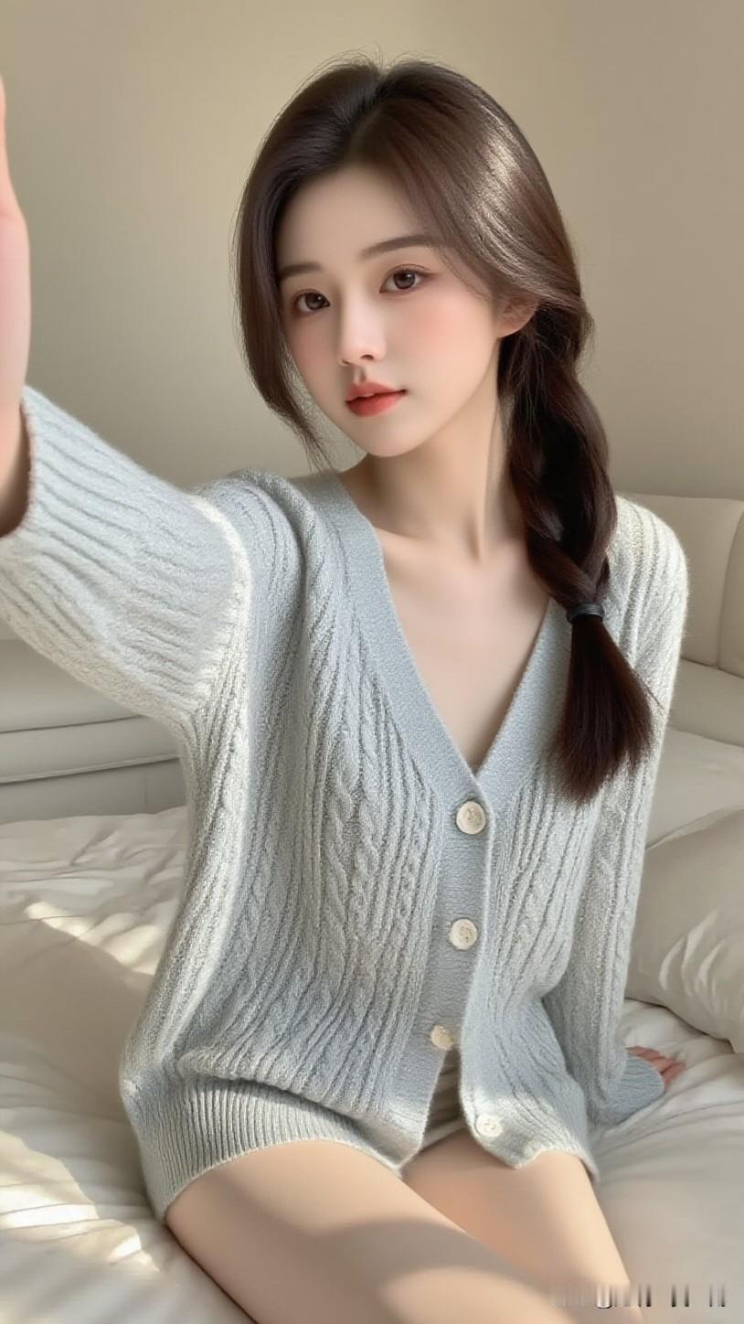 静坐芳闺中,心随云影动。你们用过最美的手机壁纸是什么 温柔甜美的少女心,浅灰色针织衫搭配自然绿植,清新自然。