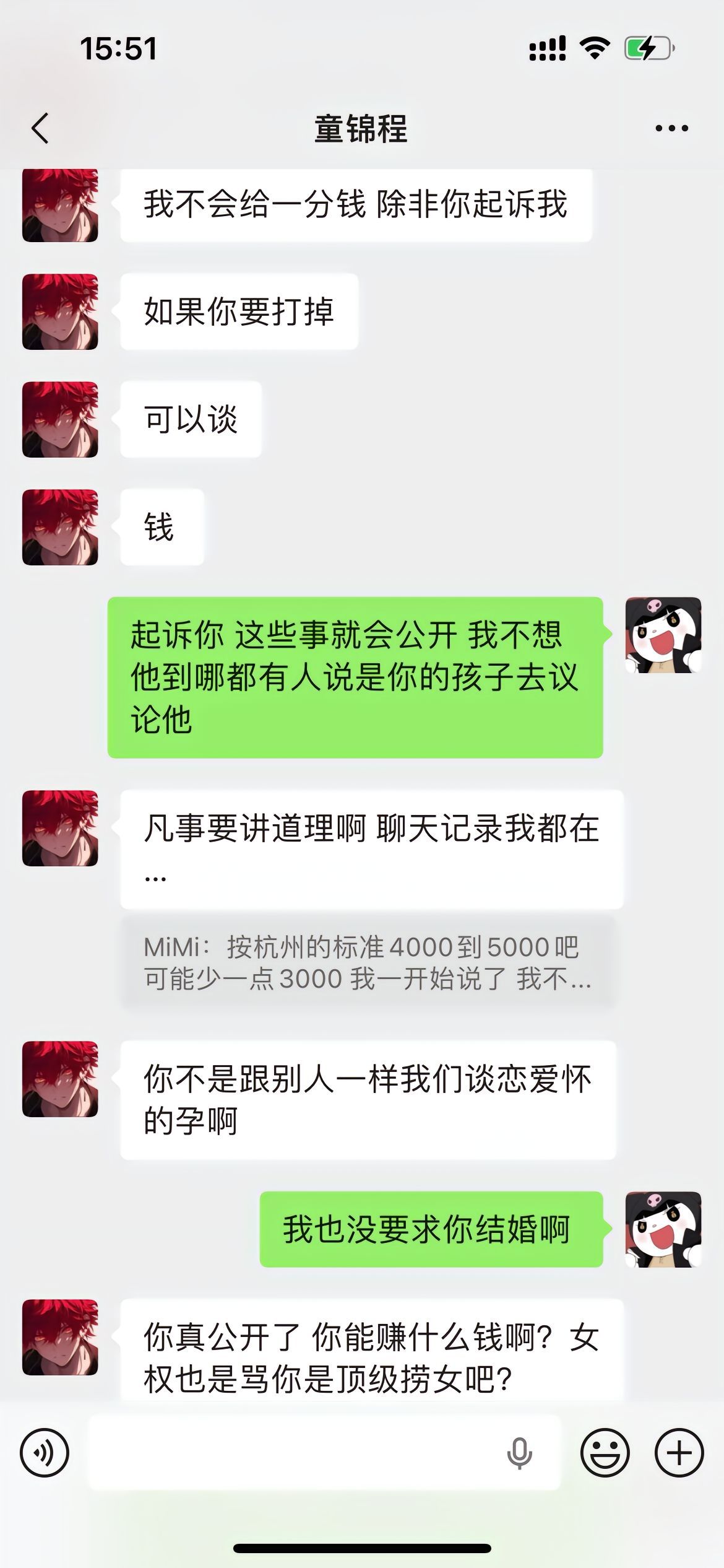 疑似童锦程前女友晒聊天记录疑似童锦程前女友聊天记录 疑似童锦程前女友晒聊天记录,,不过看聊天记录童锦程表示愿意付5000一月抚养费,只是女方想要男方一次性付清18年抚养费,感觉童锦程还是愿意负责的吧🤔曝童锦程有孩子