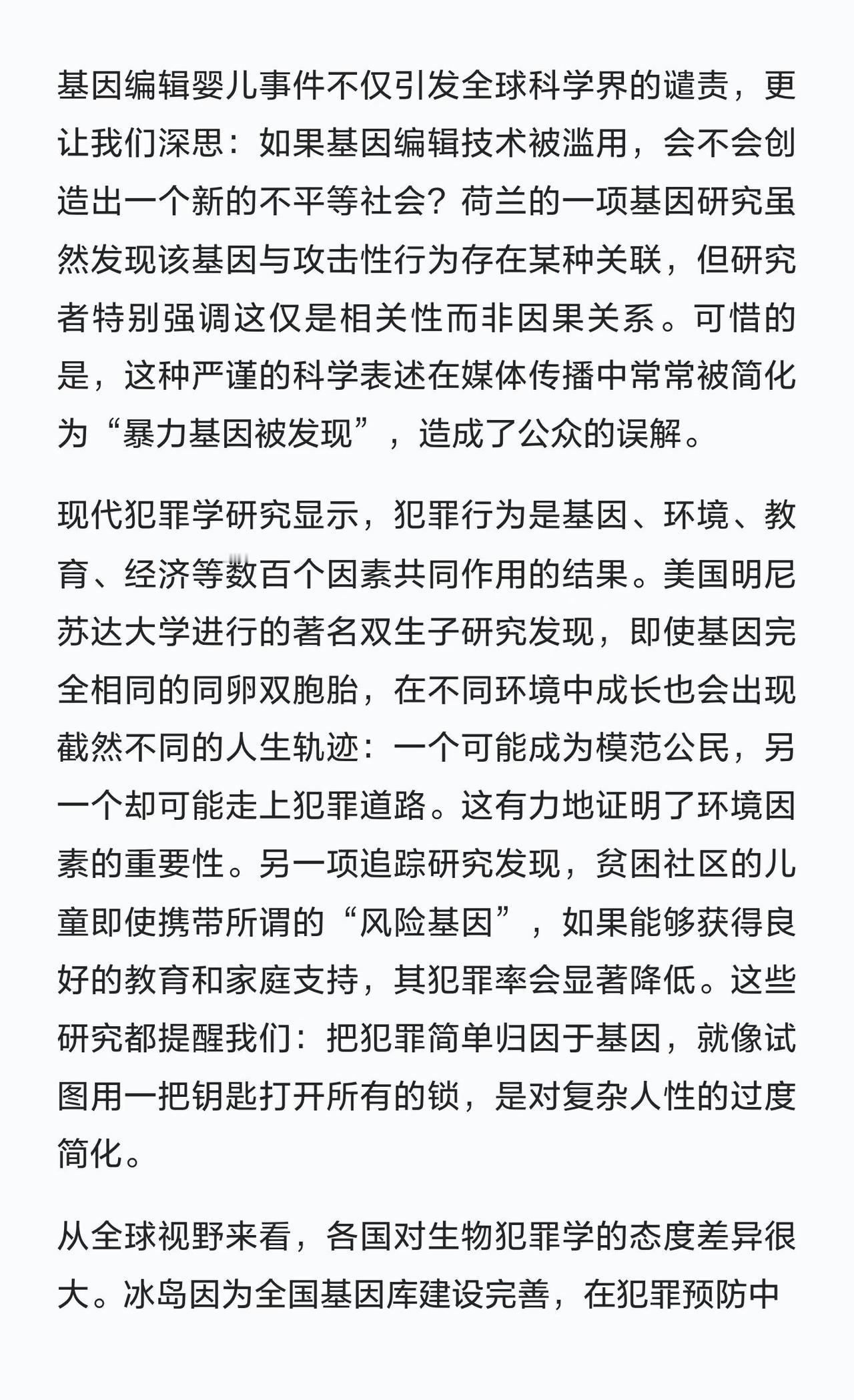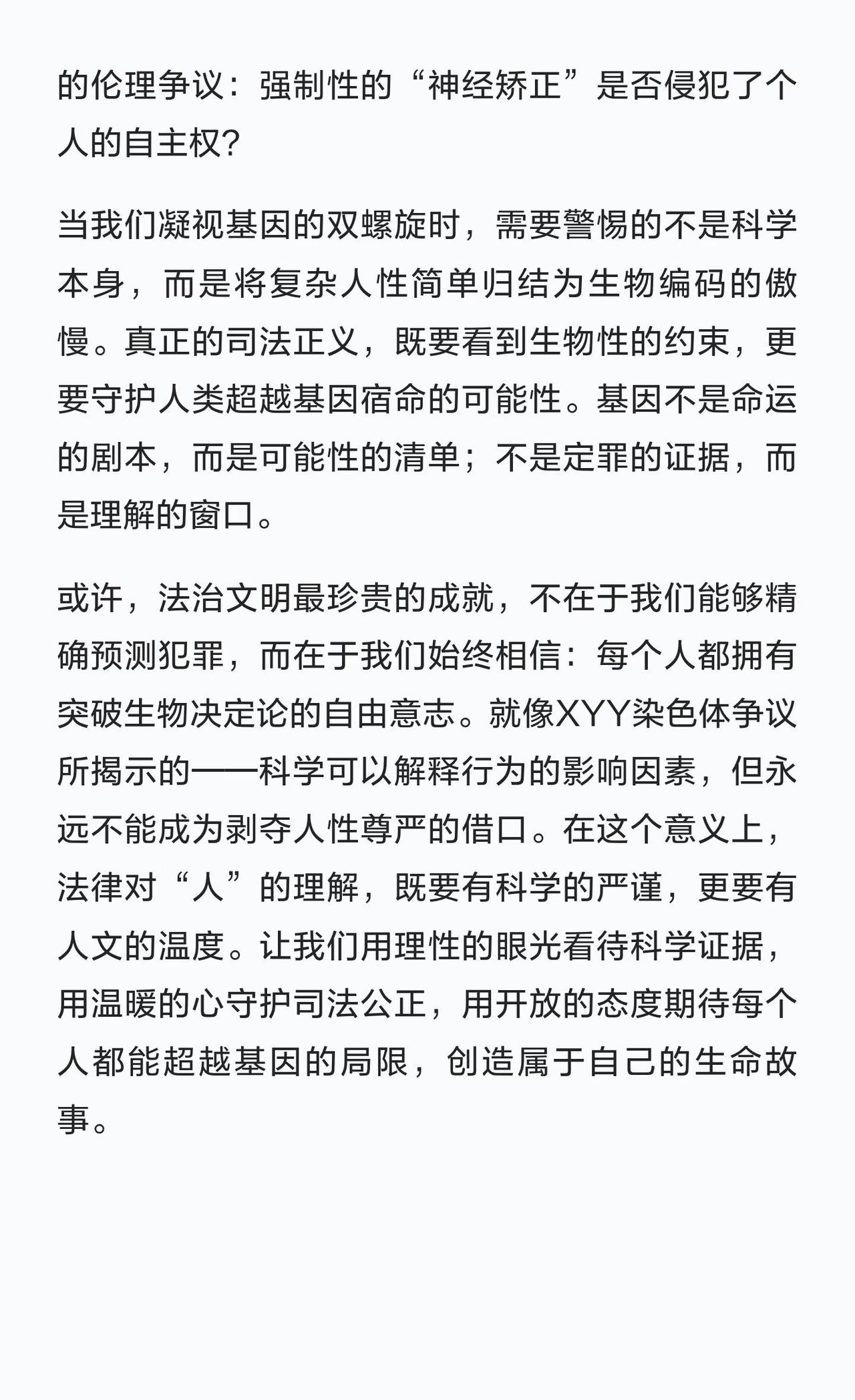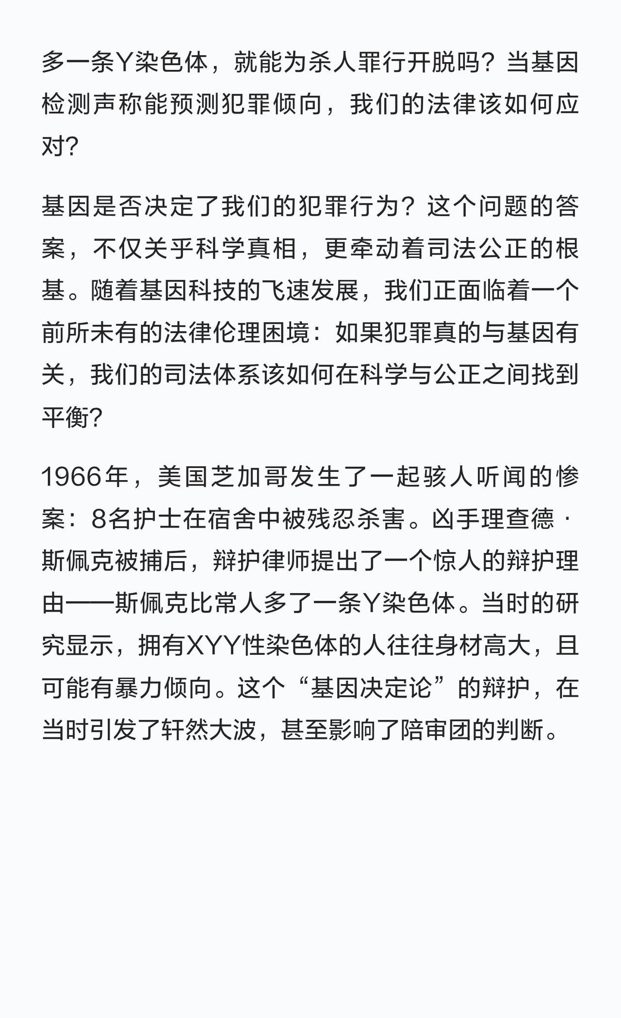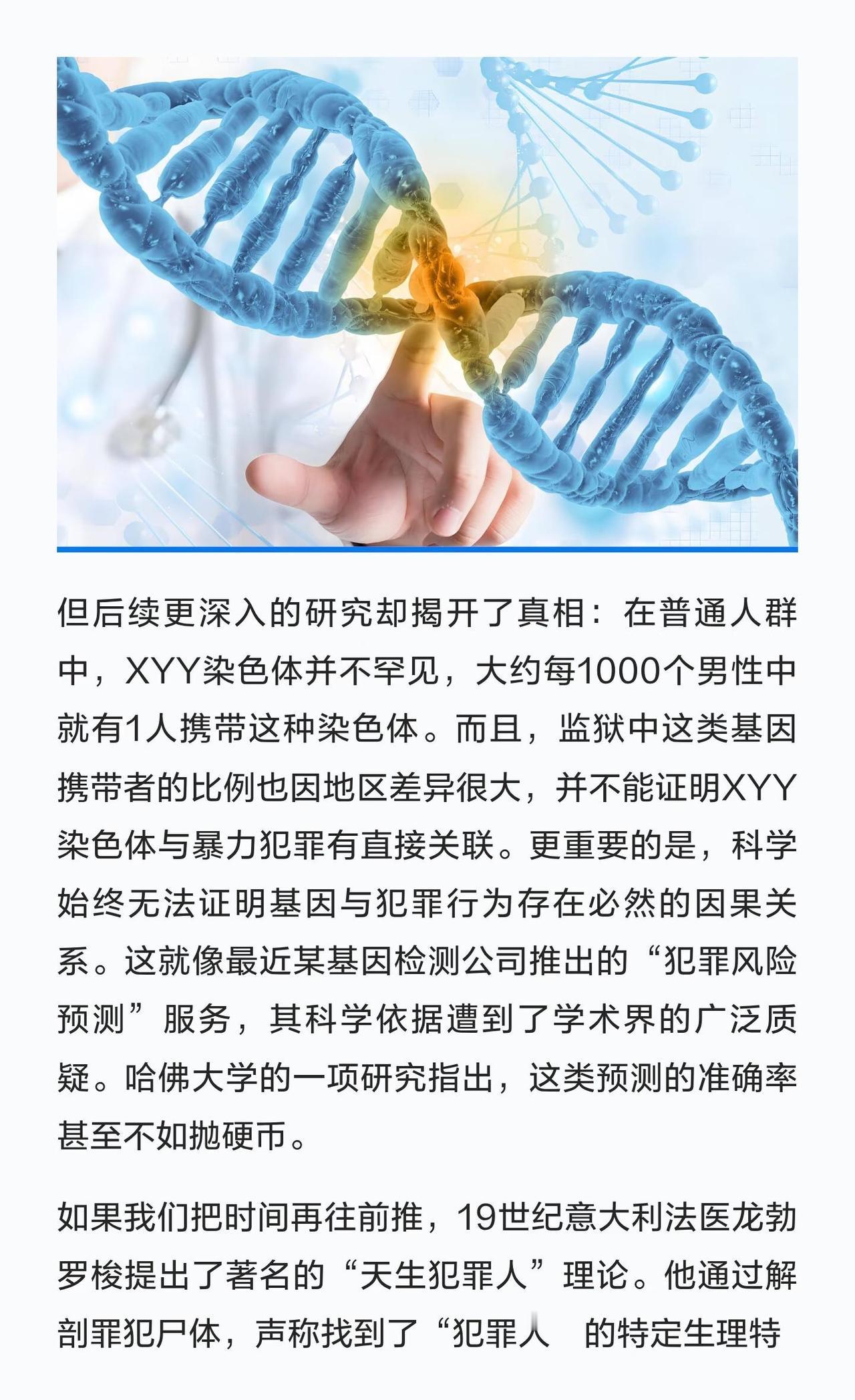 基因非罪,法理为公 多一条Y染色体,就能为杀人罪行开脱吗?当基因检测声称能预测犯罪倾向,我们的法律该如何应对?
