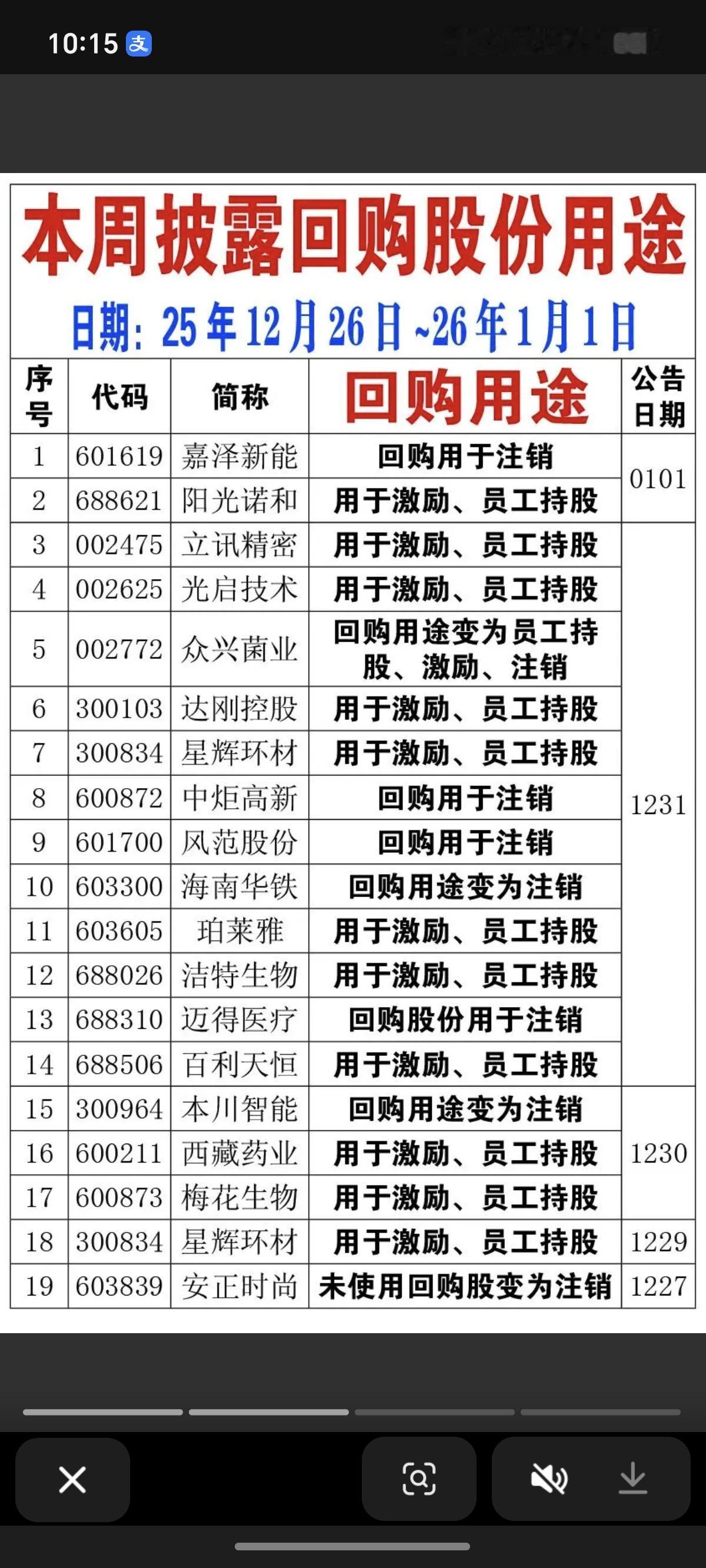 周报:15家公司披露回购计划! 回购股份,如果能够注销,才是真正利好!