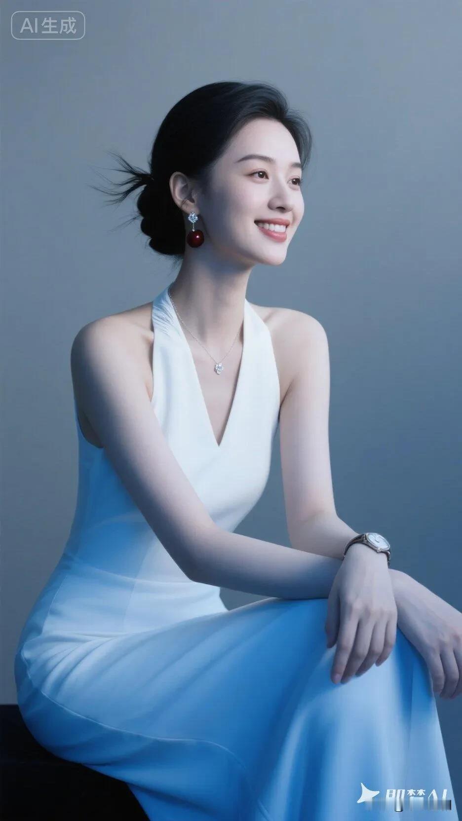 成熟稳重的美女你喜欢吗? 渐变蓝挂脖礼裙配低盘发,浅灰背景下的笑靥揉出优雅清冷的氛围感~ 淡雅蓝裙照 浅色蓝裙穿搭 紫色挂脖裙