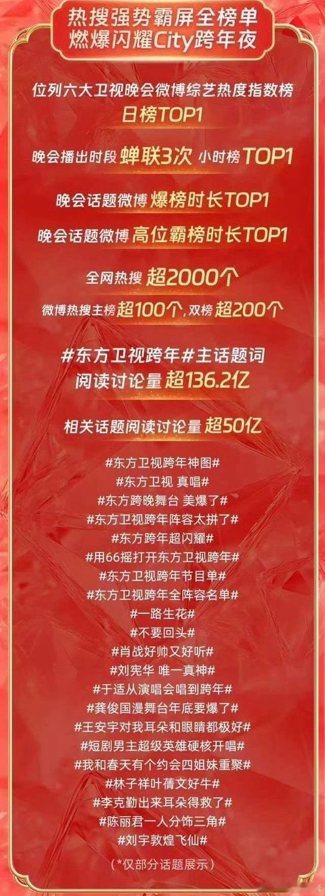 东方卫视还出了战报!cvb收视占所有卫视跨晚第二。同比去年收视逆势提升25%2025东方卫视全年收视率最高节目。断层第一。上海本地收视创年度新高!肖战得闲谨制舞台创最高收视!肖战零点压轴创东方卫视跨晚最高收视份额东方卫视跨晚创微博热度指数第一☝️全网正片市占率第一☝️ 东方卫视跨年晚会战报