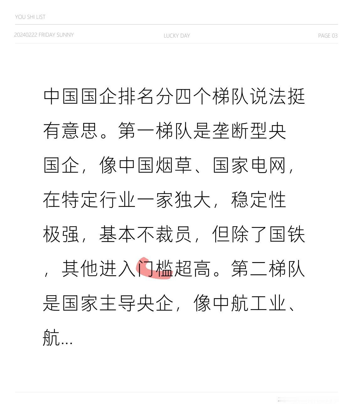 中国国企排名分四个梯队说法挺有意思。 第一梯队是垄断型央国企,像中国烟草、国家电