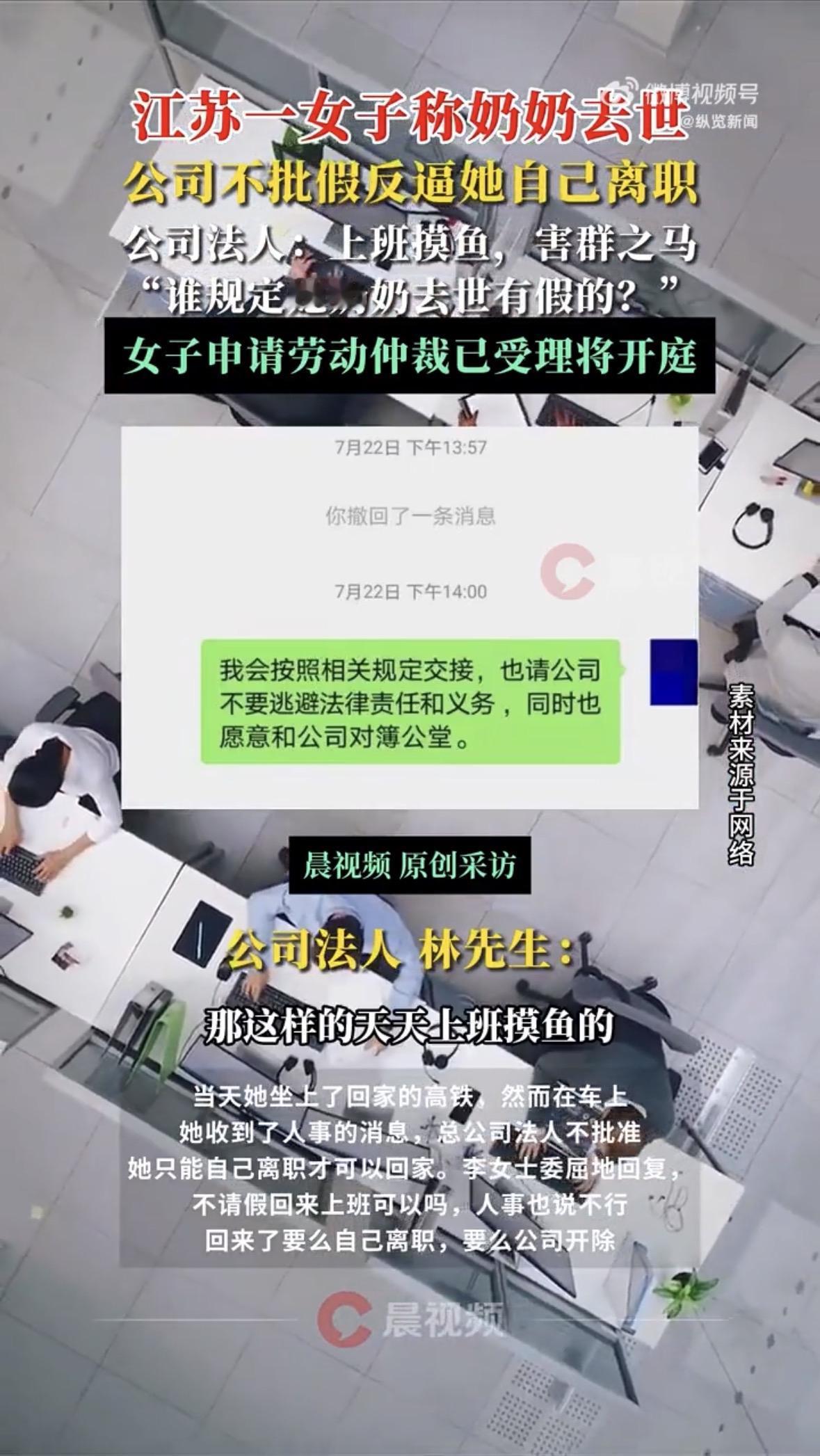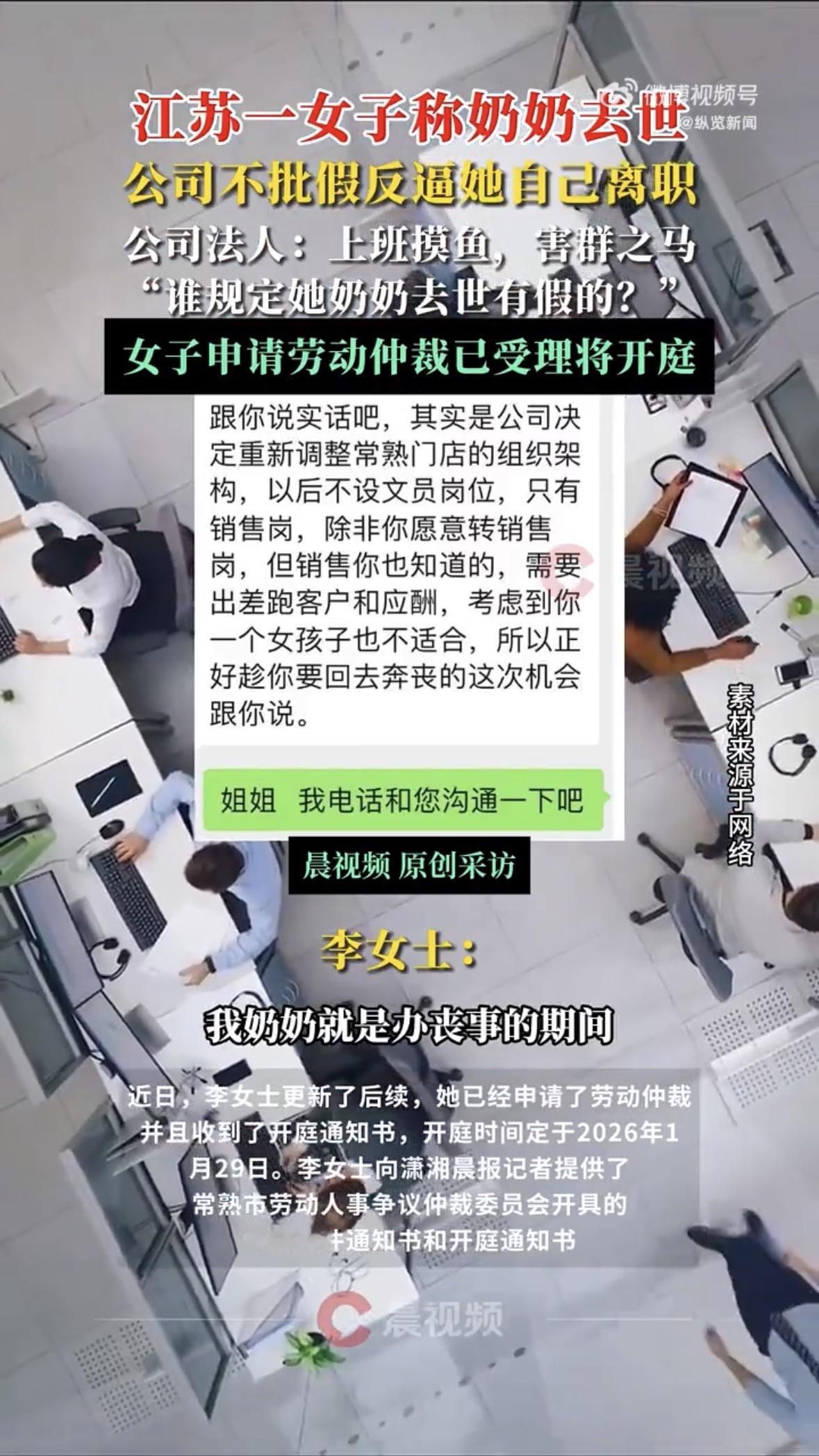 李女士的奶奶去世请个丧假,居然被公司逼着离职?到底是怎么个事儿呢? 奶奶七月走了,她按照流程找经理人事批好五天事假,然后踏上了回家的路,在车上突然收到通知:总公司老板不批,要回家就自己主动离职!姑娘委屈求全问能不能不休假立刻返岗,对方回复:要么离职,要么开除。 原来,老板咬定她上班摸鱼,是“害群之马”,还理直气壮:“谁规定奶奶去世有丧假?”字里行间,连基本的人情味都嗅不到。更讽刺的是,姑娘说分公司连监控和Wi-Fi都没有,摸鱼的指控从何谈起? 亲人离世本就是揪心的痛,公司这时候不仅不给一丝宽容,反而趁机踢人,真是寒了员工的心。 好在姑娘没怂,果断申请劳动仲裁。开庭通知已收到,明年一月底法庭上见分晓。支持她硬刚到底,有些底线,不容践踏。