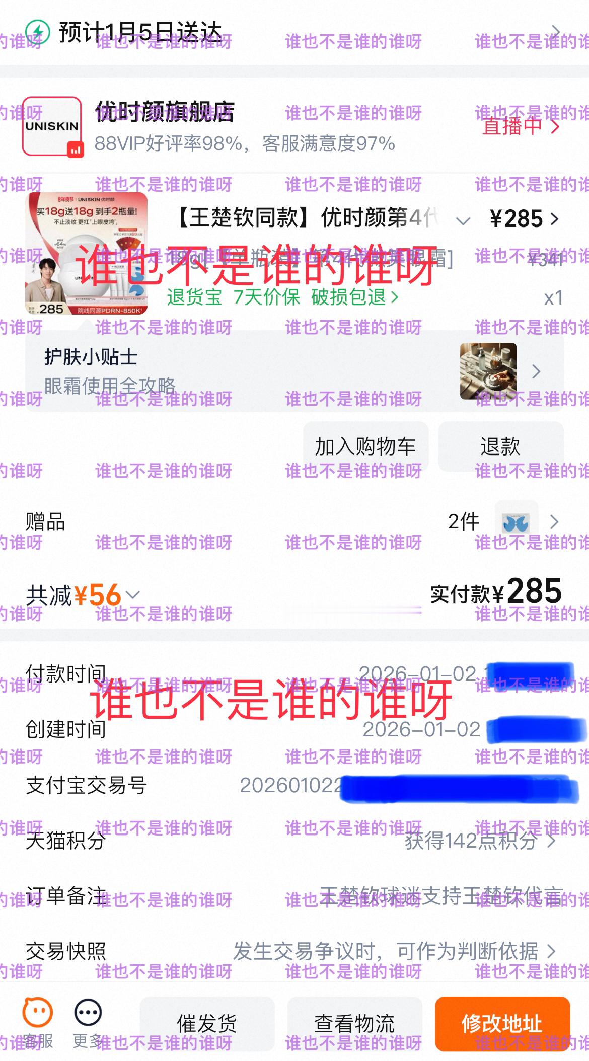 新年新气象!优时颜的「钦」心陪伴,一直到2028年咯!可喜可贺呀!祝贺 我订单显示没有红包袋,与客服确认,说系统会自动发出,要我放心