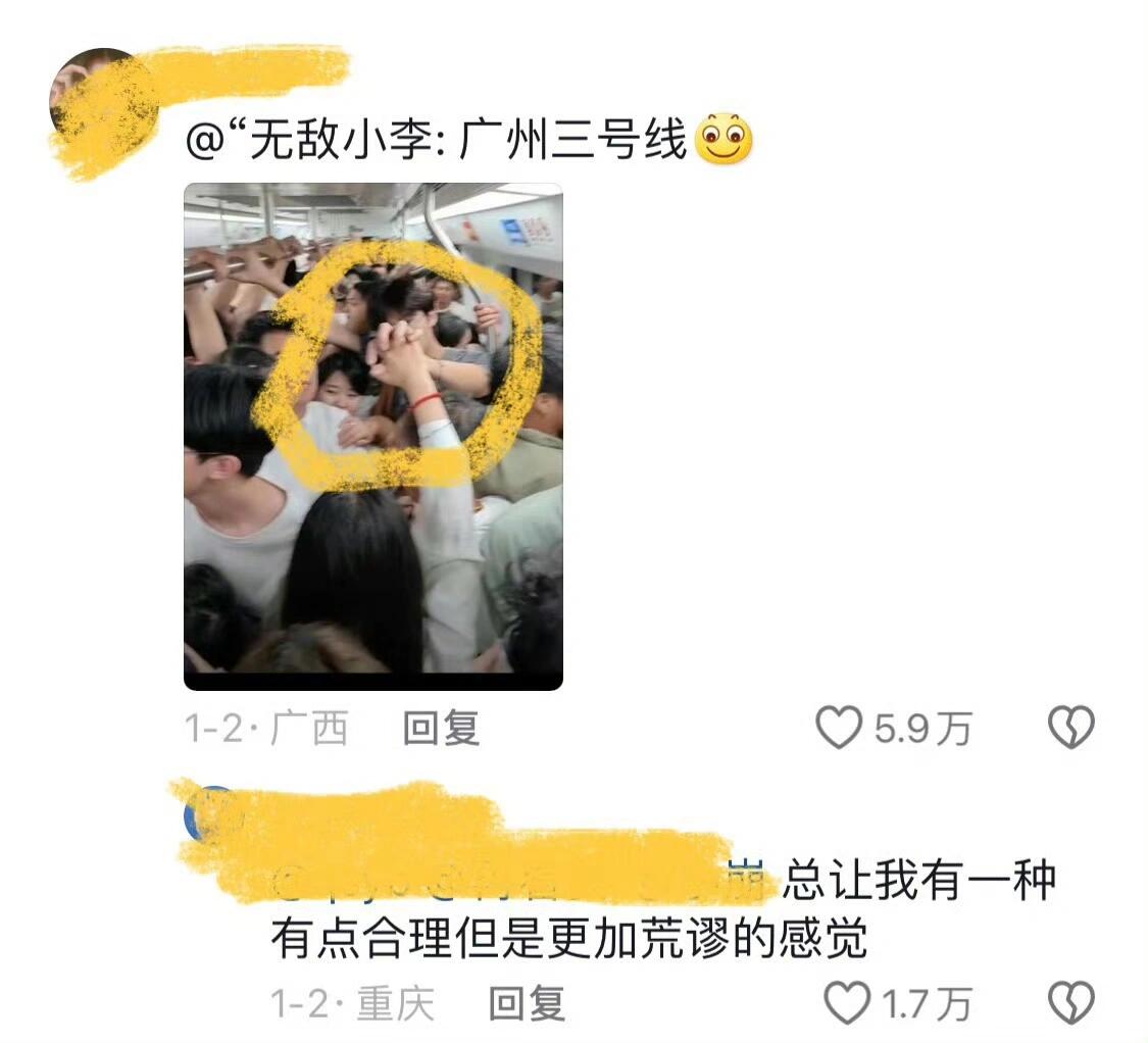 广州地铁,外国大妹子脚踩座椅公主躺悠哉悠哉,对面的乘客明知道这是不对的也不想惹是