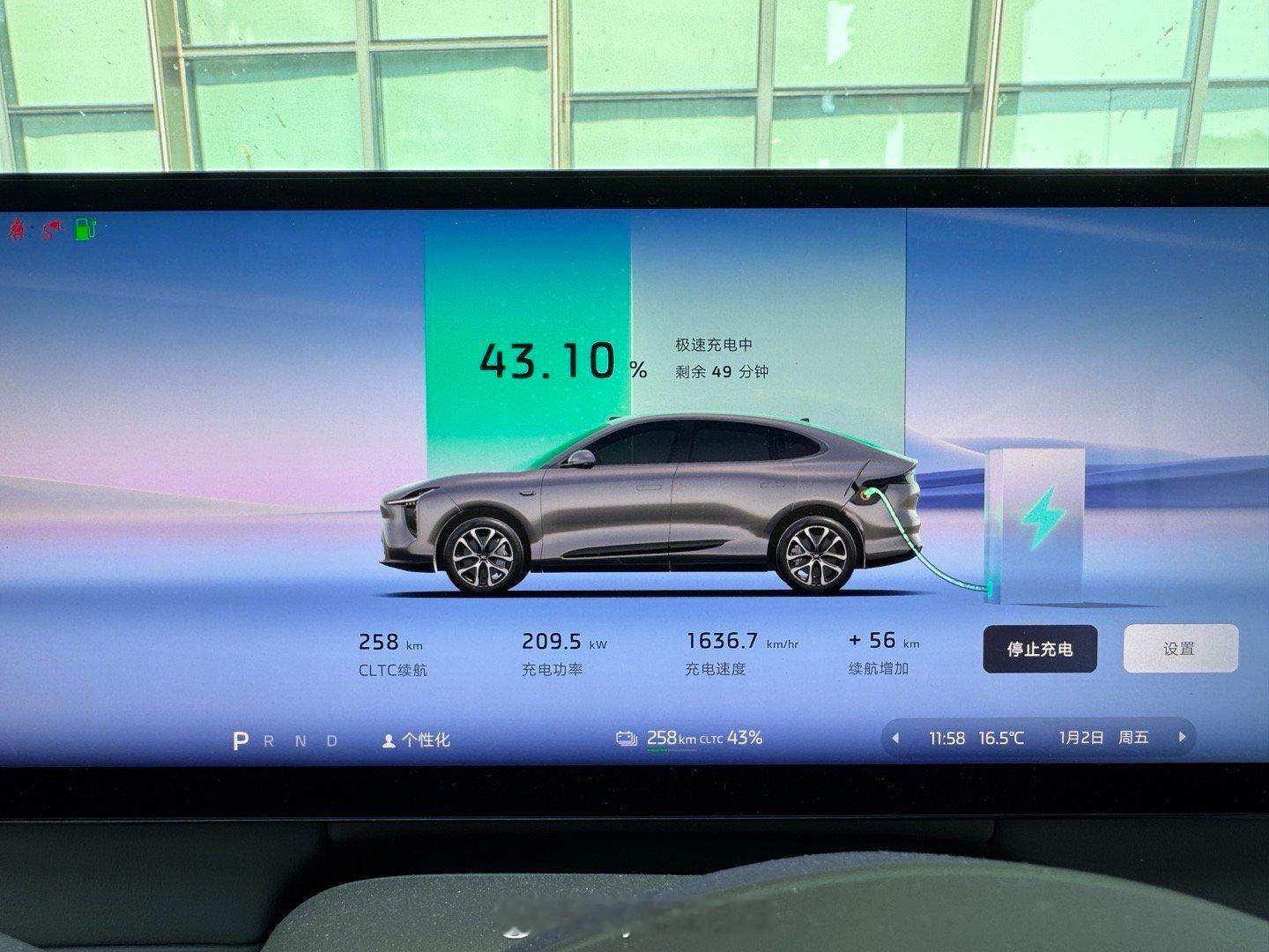 到东莞会见董事长,先充个电,找了一个智己合作的桩,功率算不错了,250的桩能跑到接近210的速度。9分钟充了210公里,很不错了,去找董事长!大v聊车