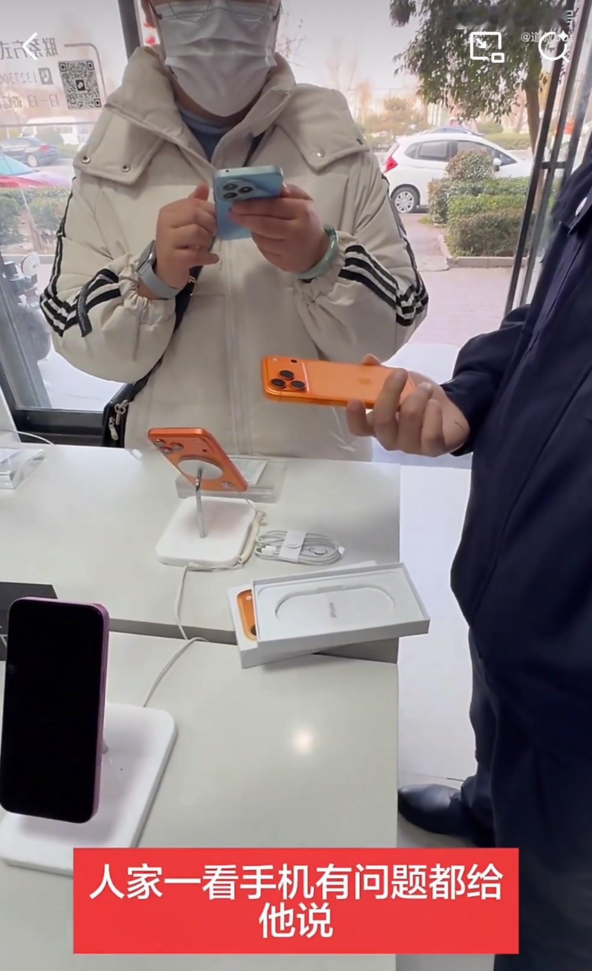周口店家吐槽,好心帮女子激活苹果17,告知买的假货,却被女子倒打一耙说调包了。这个戴眼镜和口罩的女子,在微信上贪便宜买了一个苹果17的手机,去店里找人激活。店家发现手机是假的,告诉她,并交代她如何维权。可是女子不相信手机是假的,人为被店家调包了,她说自己的是新手机,没有激活的。