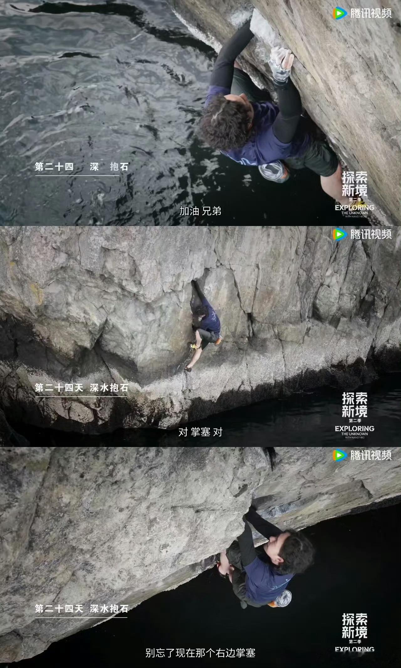 王一博两眼一睁就是爬从裂缝到深水,从器械到攀树,王一博把训练变成日常。清晨岩壁上