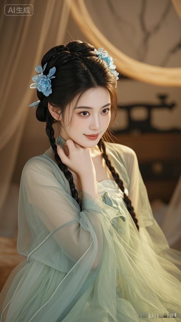 古风少女,温婉如玉,花簪点缀,古典韵味。