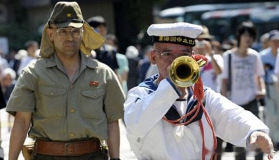 2011年,日本右翼分子身着二战时期日军军装为战犯招魂