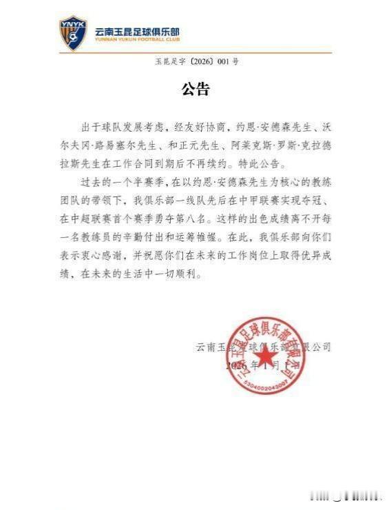 他们的成绩都是有目共睹的,实力也在线,离开是为了更好的发展,球队可能要重组,看看他们后续的转会情况了,山水有相逢,加油,云南玉昆官宣8人离队