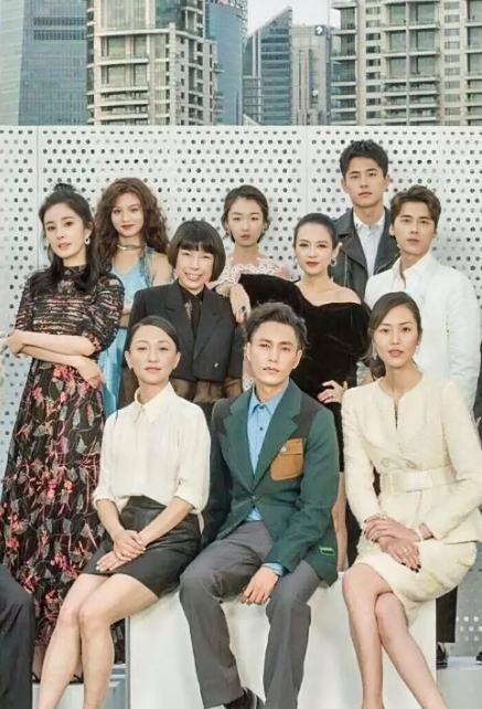 后排就认得出细眉飞扬的杨幂,明眸善睐的章子怡,还有身材小巧玲珑的周冬雨。前排左一的是楚腰卫鬓的周迅,中间的是疏眉朗目,气宇轩昂的陈坤,而坐在右边这位美女是谁?看她温婉如莲,秀韵多姿!能与章子怡、周迅、陈坤、杨幂这些大牌明星合影真是不简单!她也是演员吗?有谁认识?