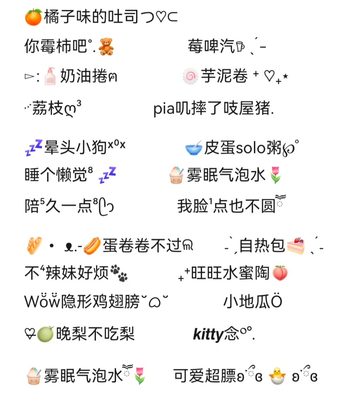 “昵称文案⤾|𝟮𝟬𝟮𝟲,改个超可爱的昵称🦍”快乐不缺席✨ 少忧多甜⸝Ꙫ⸝ 招财小铃铛🥨 🍌蕉个好运💮 亿如反掌🖐️ 亿路绿灯🚦树上有只熊ˡᵃ ❀恋屿_皖奈💒 ^xxの碎碎念ᵃ °Britney筱筱/“💌财貌双全👑 薪想事橙🍊 一只幸运喵 小富໊ཀྃ婆 ʟ̆̈ᴜ̆̈ᴄ̆̈ᴋ̆̈ʏ̆̈🧡 এ᭄夹薪饼干立刻🈶财⁶🍞面包脑袋 ʚ呆呆ɞ %美乐蒂-挽梦油炸小丸子鸭の曲奇饼🍪 ^奶盖 啊biu~ʕ•̫͡•ʔ 甜系🍄 又困ˡᵃ💤 小乖ღ³.生气的烤冷面 忧郁小薯条🍟 关你什么柿🍅 卷毛小泡面🍜晕头小狗ˣ⁰ˣ 越来越好 Go͜o͜d͜ 树上有只熊ˡᵃ ❀恋屿_皖奈💒 ^xxの碎碎念ᵃ °Britney筱筱/“💌不煲电话粥🥣 失眠吐司🍞 你洗了蒜了 犯困蛋挞💤