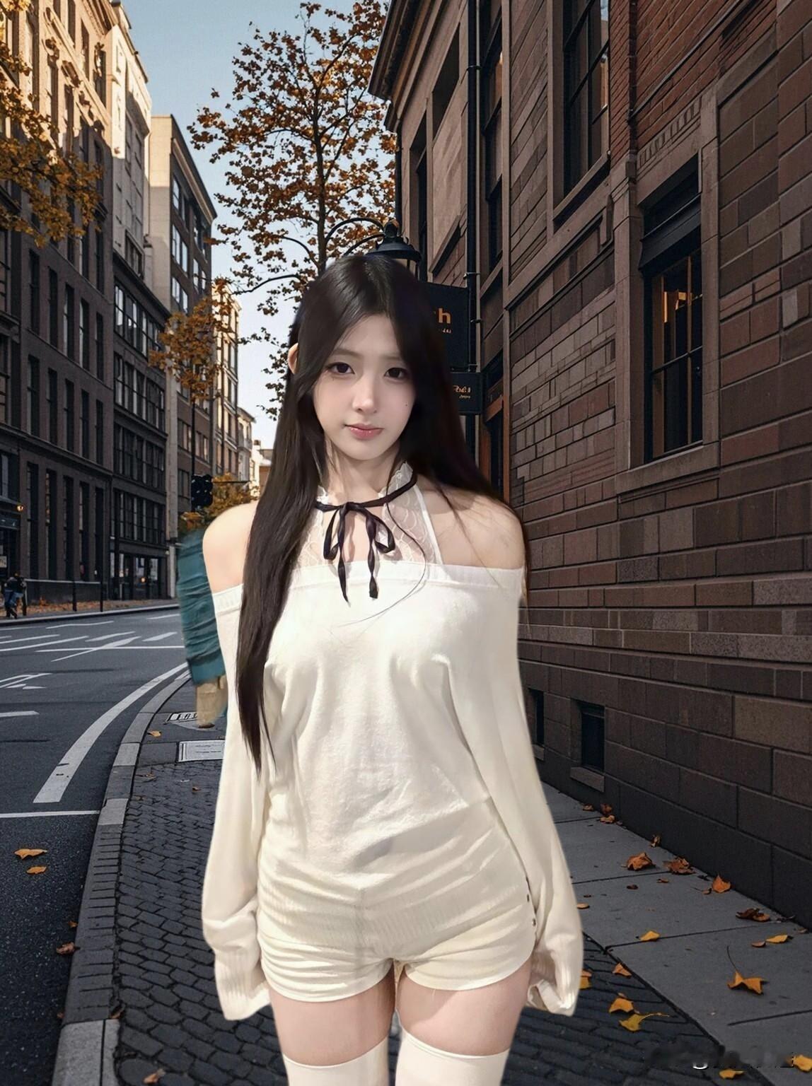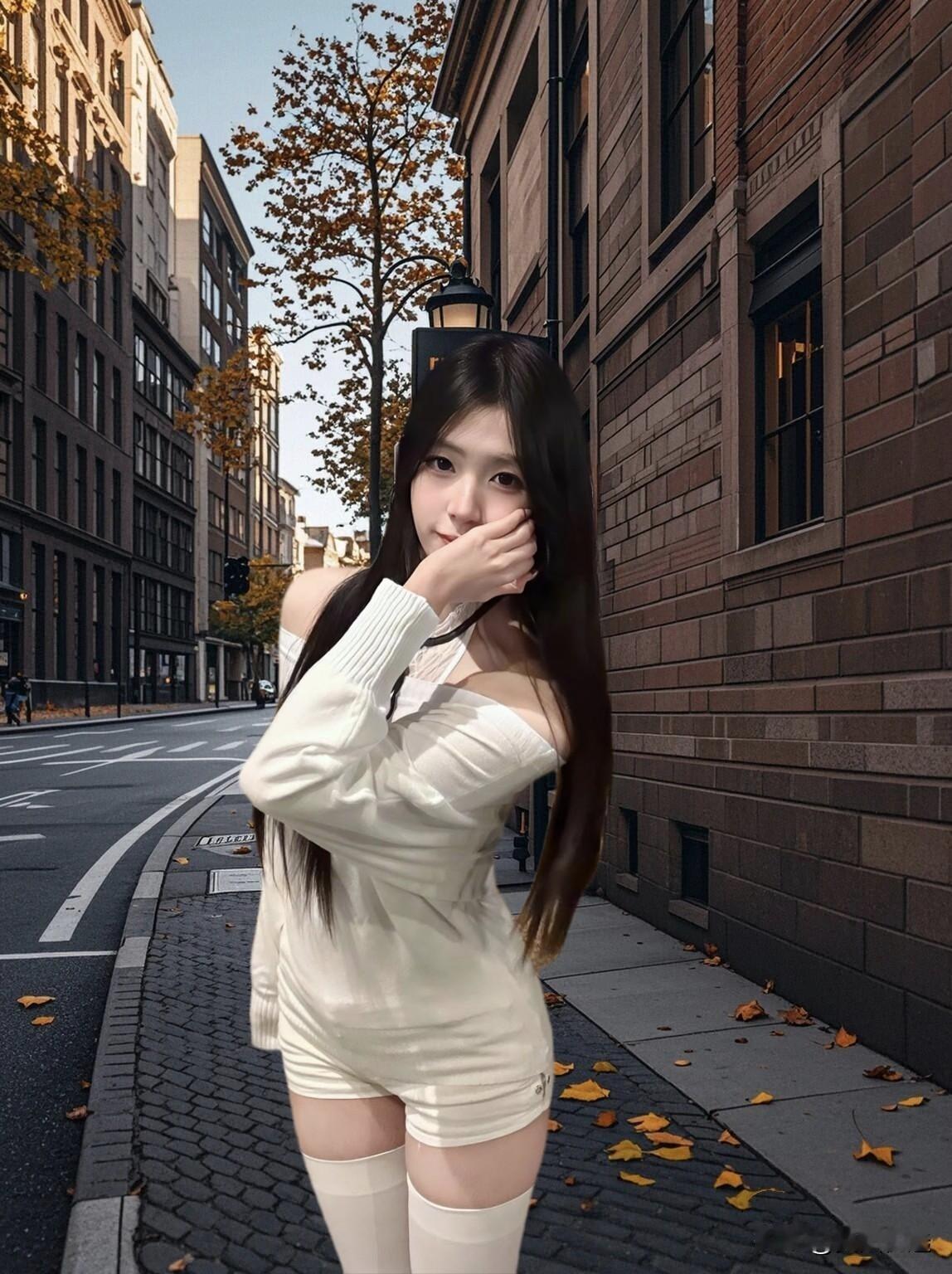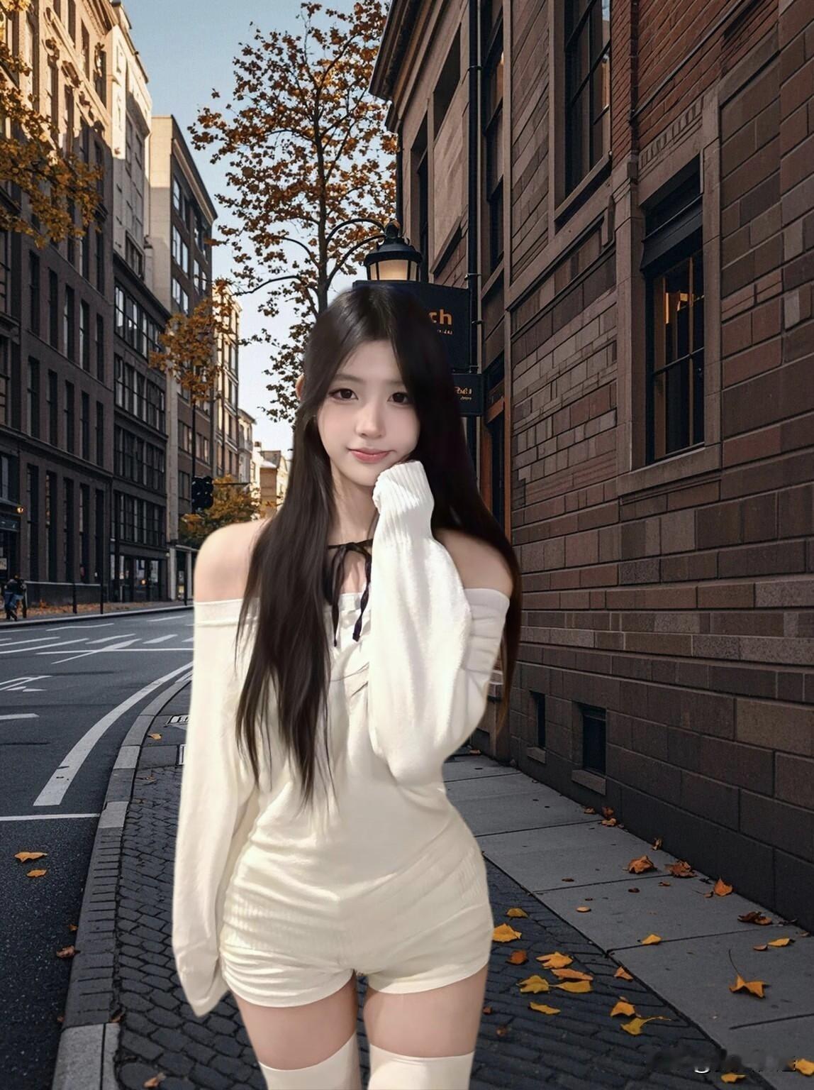 秋日街拍,甜美少女穿搭,温柔米色与秋叶相映成趣