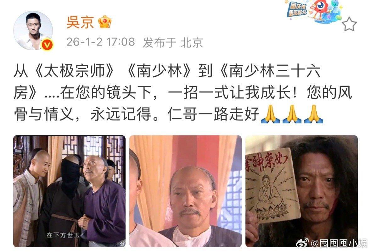 吴京发博悼念袁祥仁吴京缅怀袁祥仁吴京发博悼念袁祥仁,当年他给吴京早年的武打戏把控