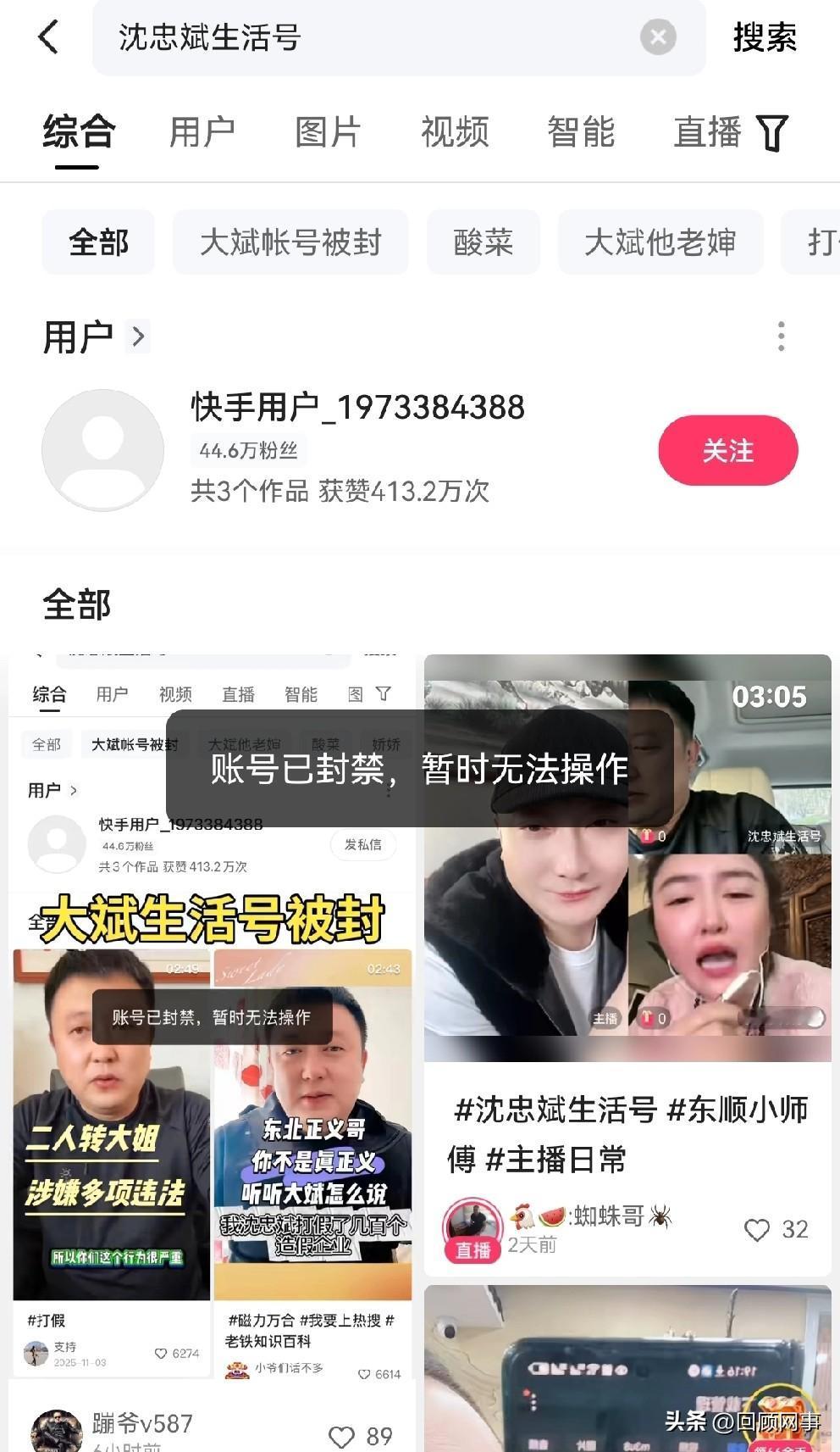 打假博主大斌生活号,因为侵犯他人名誉权,账号永久封禁! K