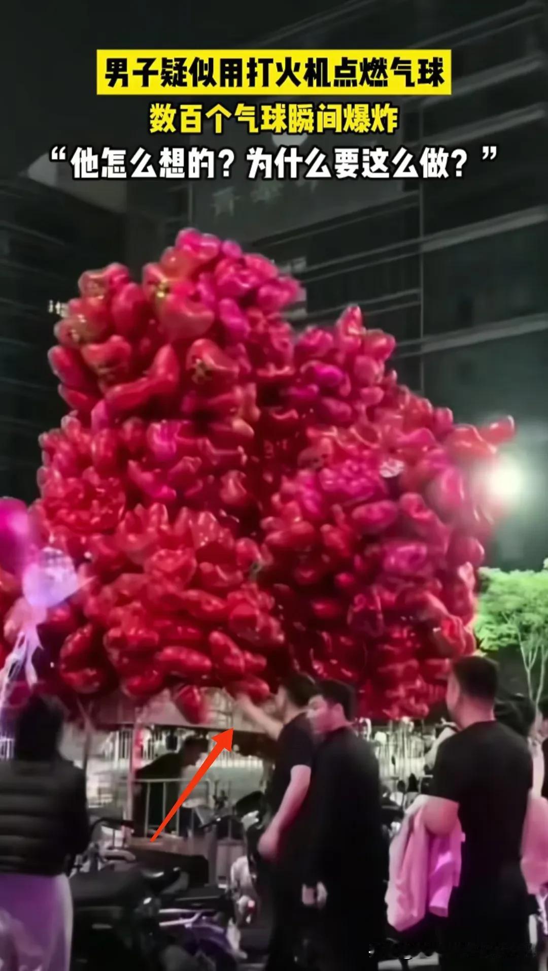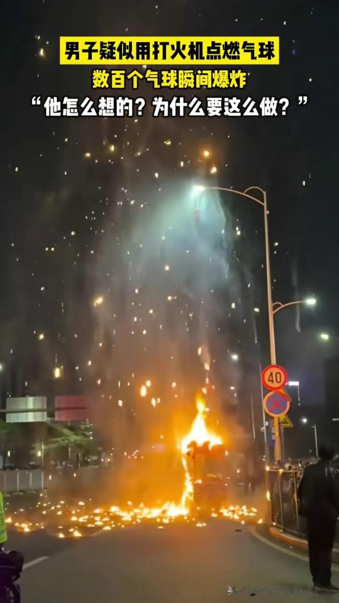 愚蠢的人, 做点坏事都让人恨得牙痒痒的! 深圳龙岗跨年夜活动现场,一名男子趁商贩不注意,顺手就掏出打火机点燃了人家三轮车上的大量气球。 结果这些气球瞬间爆炸、形成巨大火团,周围人群恐慌躲避!商贩大叔警醒下车,下意识地将车往前推了几步,远离人群。 万幸没人伤着,看视频中着火的过程,有网友分析:这几百个气球也就是氦气,如果是氢气,那这个点火的男子就先被炸死了! 大型活动现场,如果引起人群集体恐慌,很难想象会造成多少意外伤害!现男子已被蜀黍控制,过年喜提银手镯一副,得他所愿,挺好! 就是商贩大叔有点倒霉,估计也是吓得够呛,无妄之灾啊[捂脸]!您见过这样又蠢又坏的人吗?分享每日的感悟