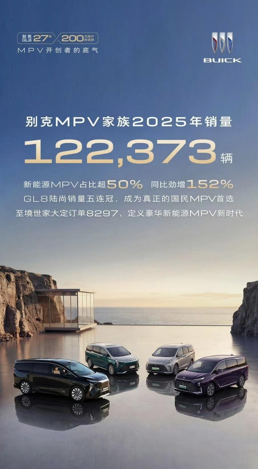 别克品牌2025年度销量43.6万辆,其中: 🚗MPV家族全年销量12.2万辆