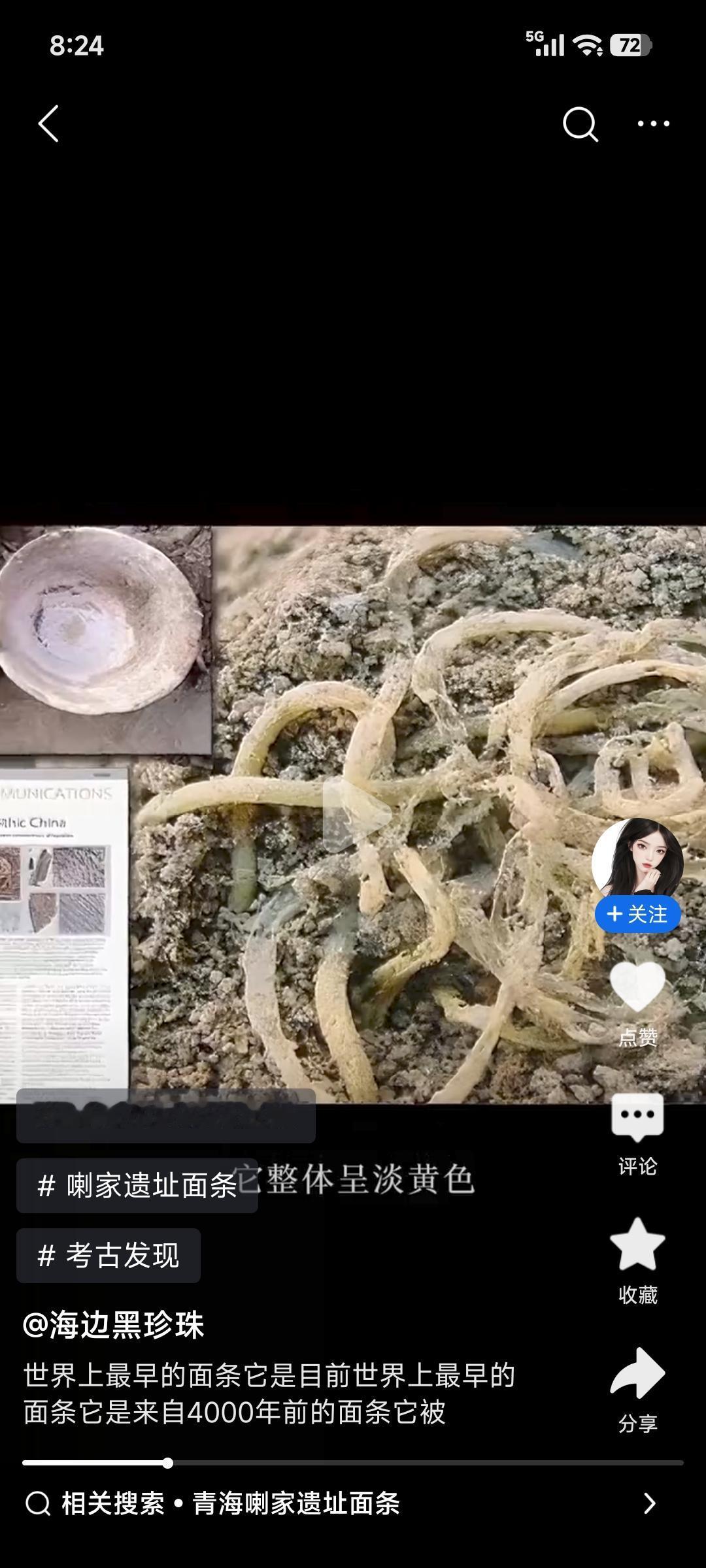 谁能想到世界最早的面条竟来自4000多年前!青海喇家遗址出土的一只倒扣陶碗,藏着人类最早面条的考古实证。这面条呈黄色,和今天拉面形状一样,直径3毫米,总长超50厘米,成分是大量粟与少量黍,也就是小米面加一点黄米面。 研究人员还检测出少量油脂和动物骨头碎片,类似现在兰州拉面的配菜。当时没有小麦、缺乏面筋,先民采用类似饸烙面的挤压工艺,掌握了脱粒、粉碎等全流程技术,这饮食革命太牛了!如今,面条成了寻常烟火,延续着千年饮食文明。