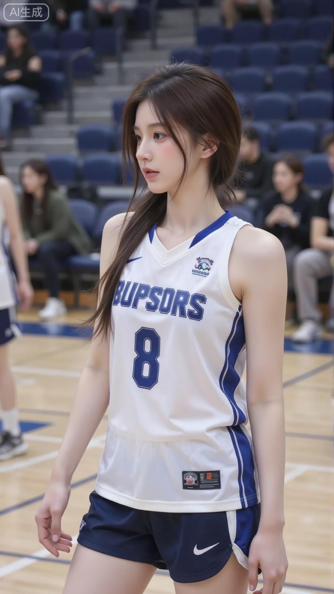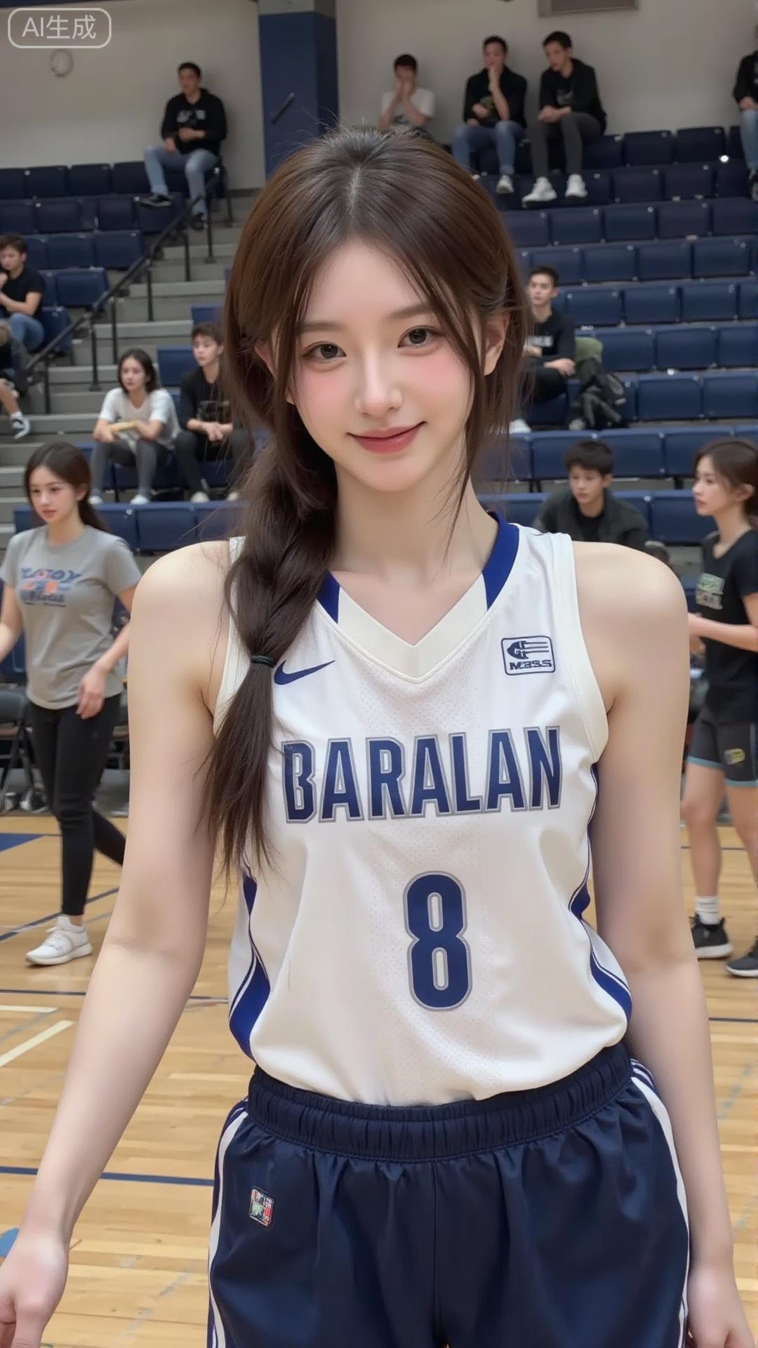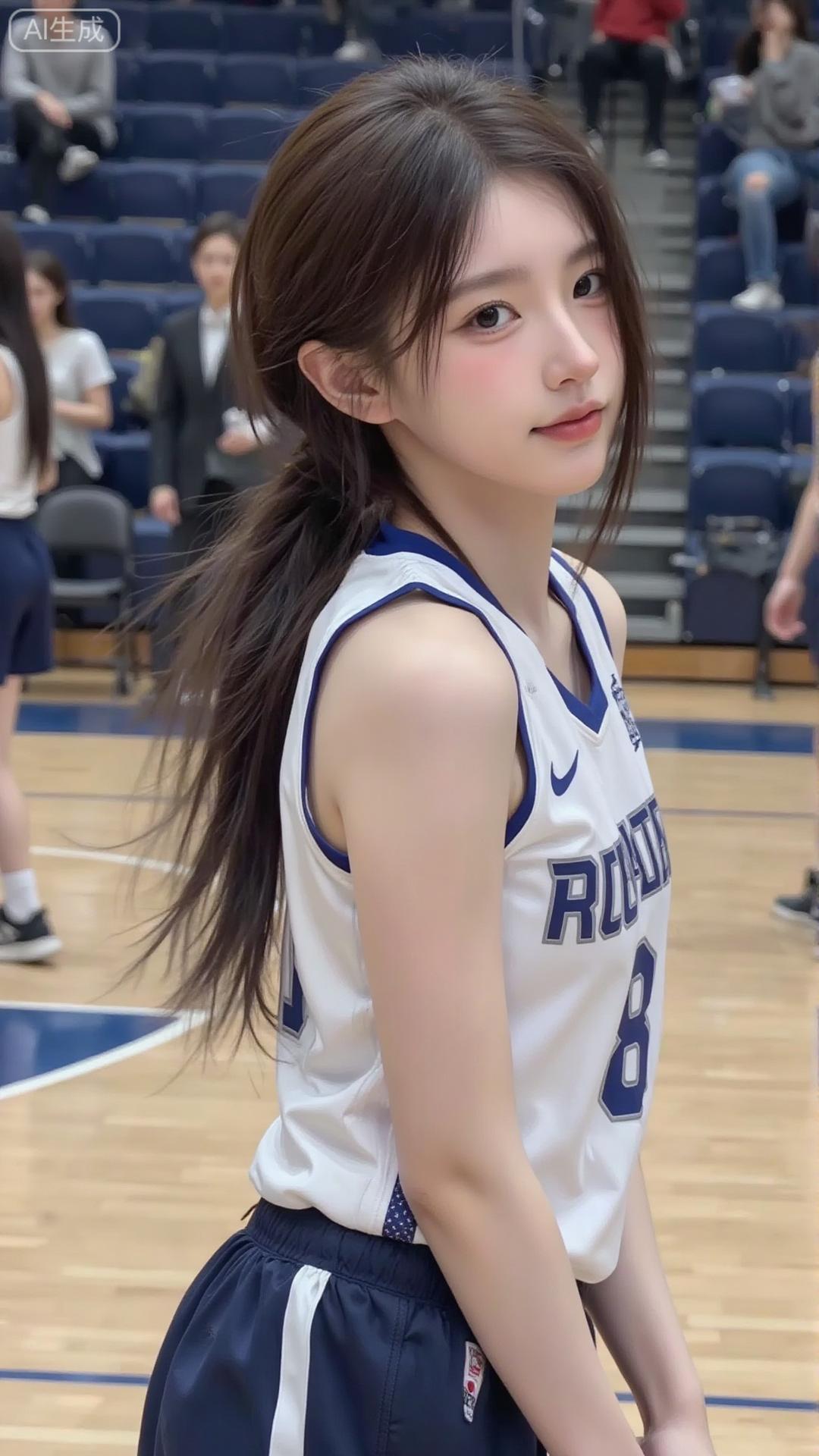 球场里的运动甜妹好元气 白蓝球服搭马尾辫,清爽又带点少年感,站在球场上笑起来,连汗水都裹着鲜活的甜~ 看台的人影衬着球场光,活力直接戳中,这就是运动系甜妹的氛围感吧!白色运动穿搭 绿色运动套装女