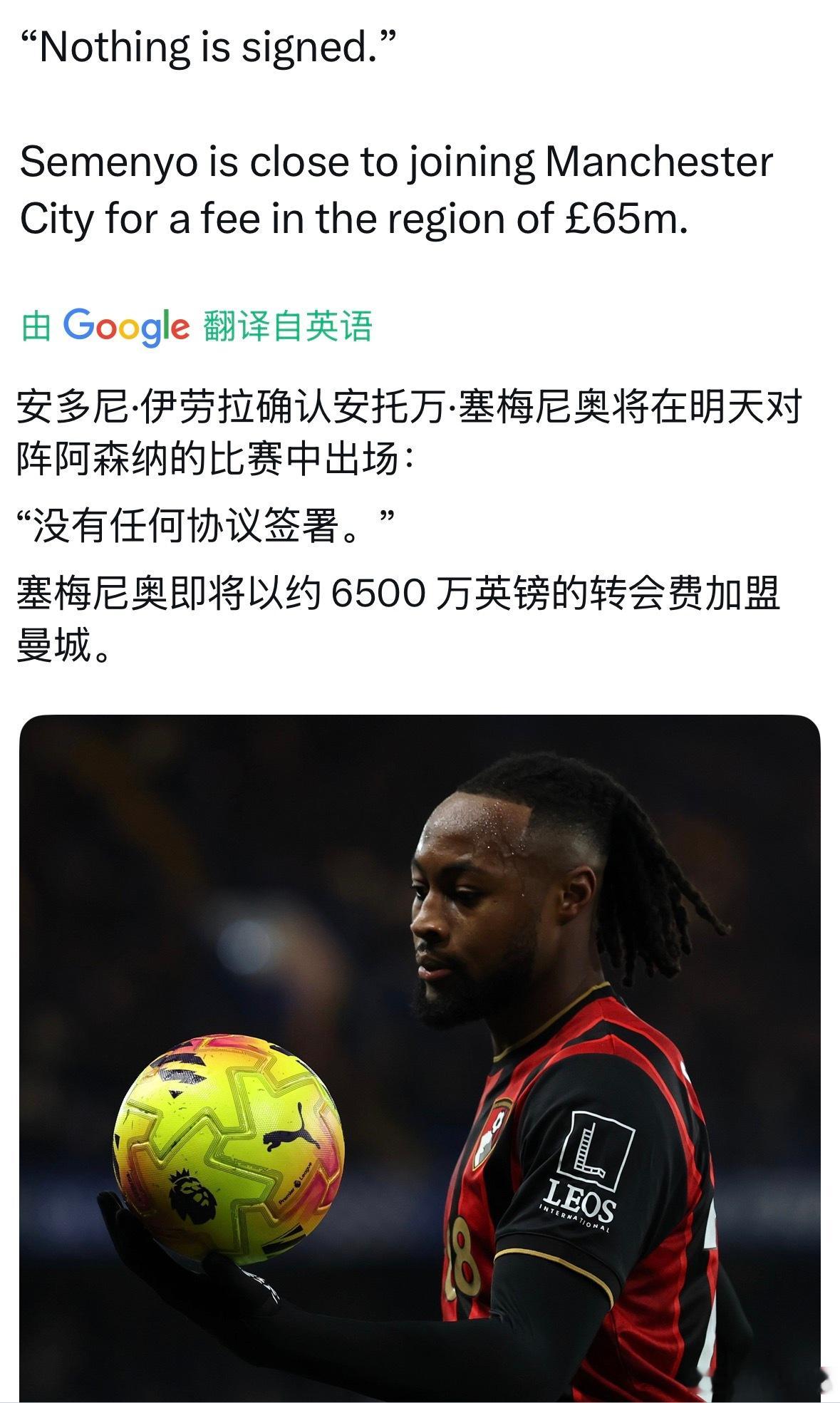 伊奥拉:塞门约明晚将出战阿森纳