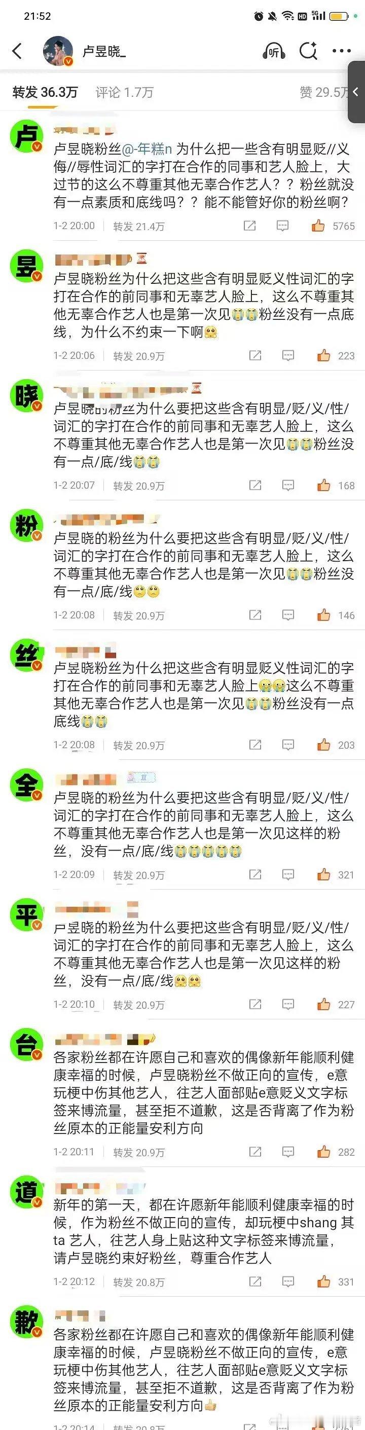 虞书欣粉丝贴脸卢昱晓微博转发排字了