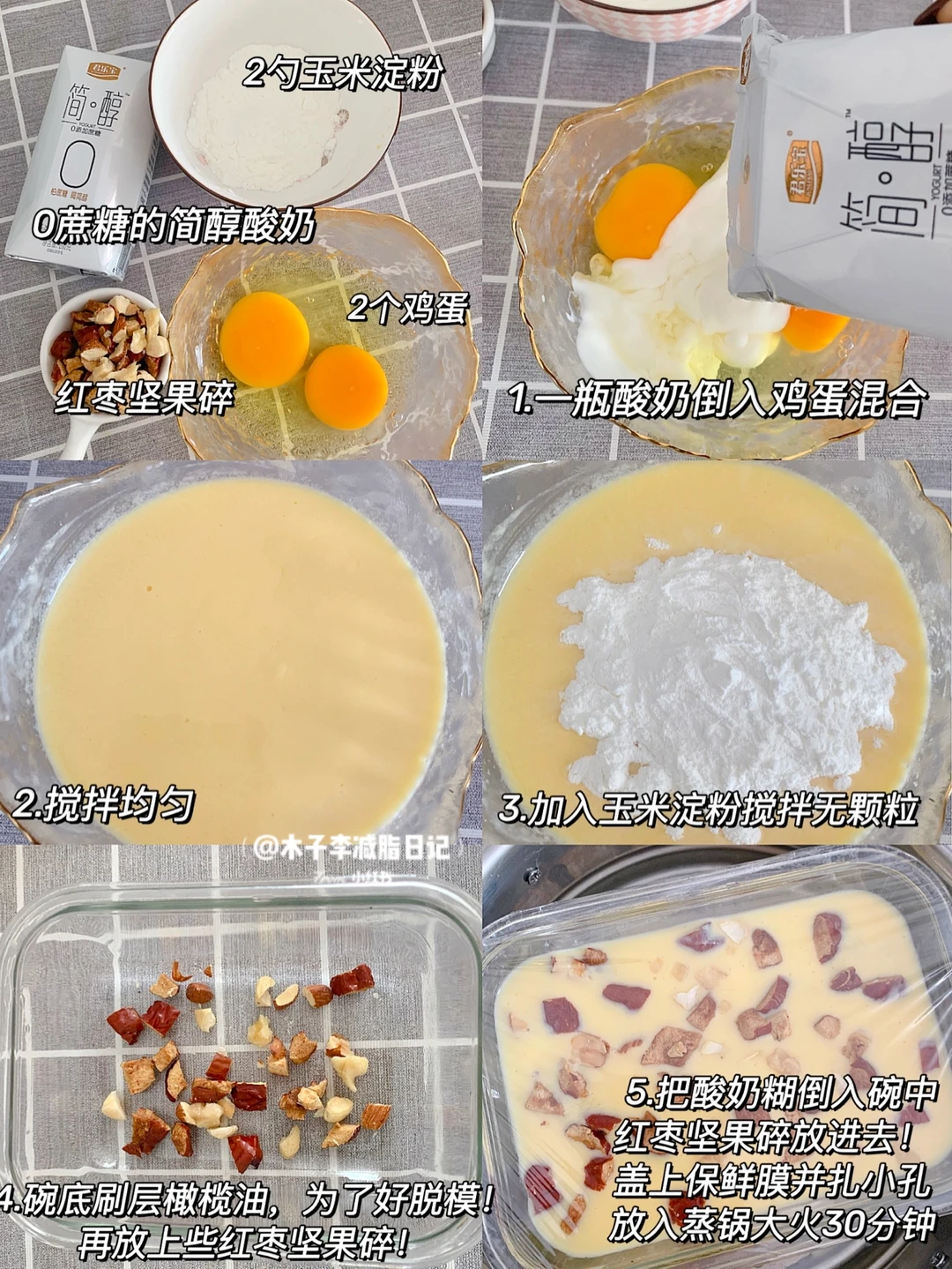 📣:美好的一天从早餐开始!今天早餐用无蔗糖酸奶做了蒸糕!口感细腻有嫩滑!奶香奶香的!蒸糕没有额外加糖减脂吃也无负担的~酸奶是我常喝的简醇0蔗糖酸奶~这种包装是常温保存的!没有冰箱的宿舍党可以冲啦~口感依然hin顺滑浓稠~好好喝~0添加蔗糖!热量低 膳食纤维含量高!减脂控糖必囤的酸奶啦~不管配麦片吃还是做甜品都是不错选择~营养又健康!